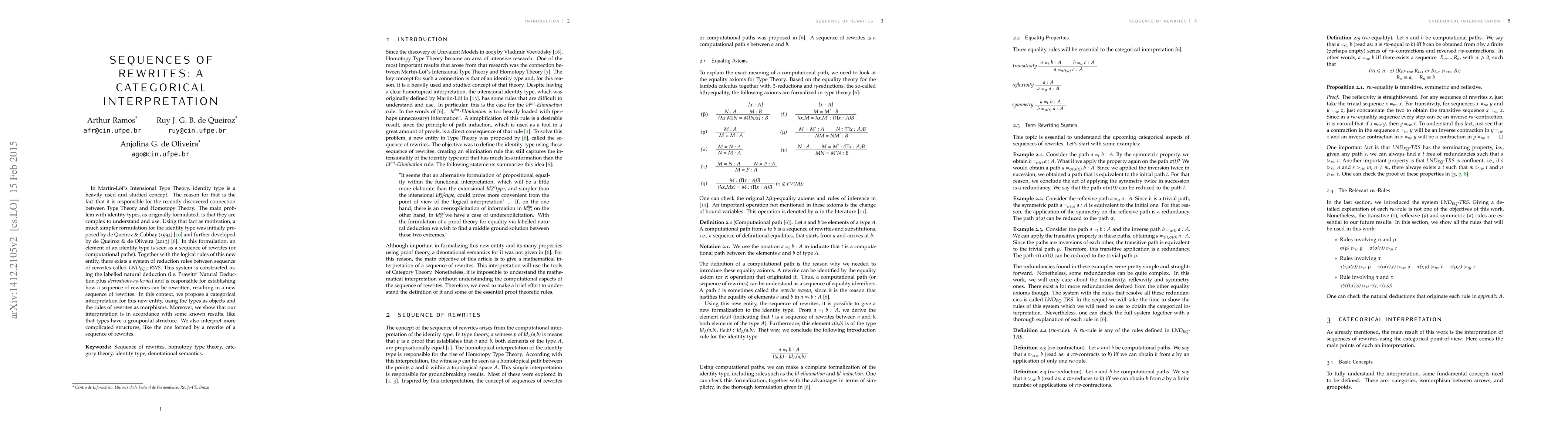 In Martin-L\"of's Intensional Type Theory, identity type is a heavily used and studied concept. The reason for that is the fact that it's responsible for the recently discovered connection between Type Theory and Homotopy Theory. The main problem with identity types, as originally formulated, is that they are complex to understand and use. Using that fact as motivation, a much simpler formulation for the identity type was proposed by Queiroz & Gabbay (1994) and further developed by de Queiroz & de Oliveira (2013). In this formulation, an element of an identity type is seen as a sequence of rewrites (or computational paths). Together with the logical rules of this new entity, there exists a system of reduction rules between sequence of rewrites called LND_{EQS}-RWS. This system is constructed using the labelled natural deduction (i.e. Prawitz' Natural Deduction plus derivations-as-terms) and is responsible for establishing how a sequence of rewrites can be rewritten, resulting in a new sequence of rewrites. In this context, we propose a categorical interpretation for this new entity, using the types as objects and the rules of rewrites as morphisms. Moreover, we show that our interpretation is in accordance with some known results, like that types have a groupoidal structure. We also interpret more complicated structures, like the one formed by a rewrite of a sequence of rewrites.