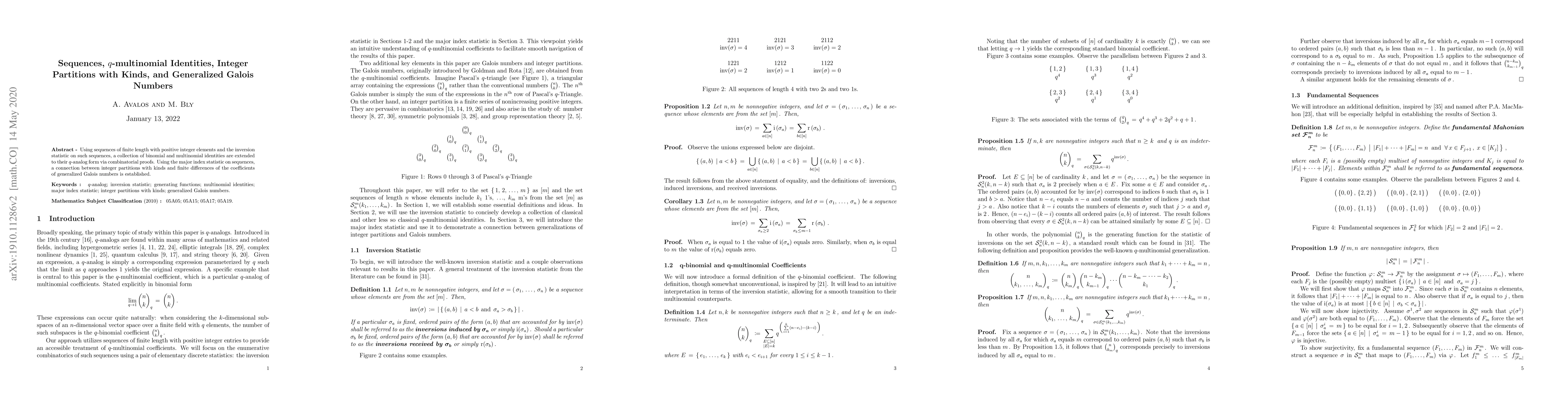 Using sequences of finite length with positive integer elements and the inversion statistic on such sequences, a collection of binomial and multinomial identities are extended to their $q$-analog form via combinatorial proofs. Using the major index statistic on sequences, a connection between integer partitions with kinds and finite differences of the coefficients of generalized Galois numbers is established.