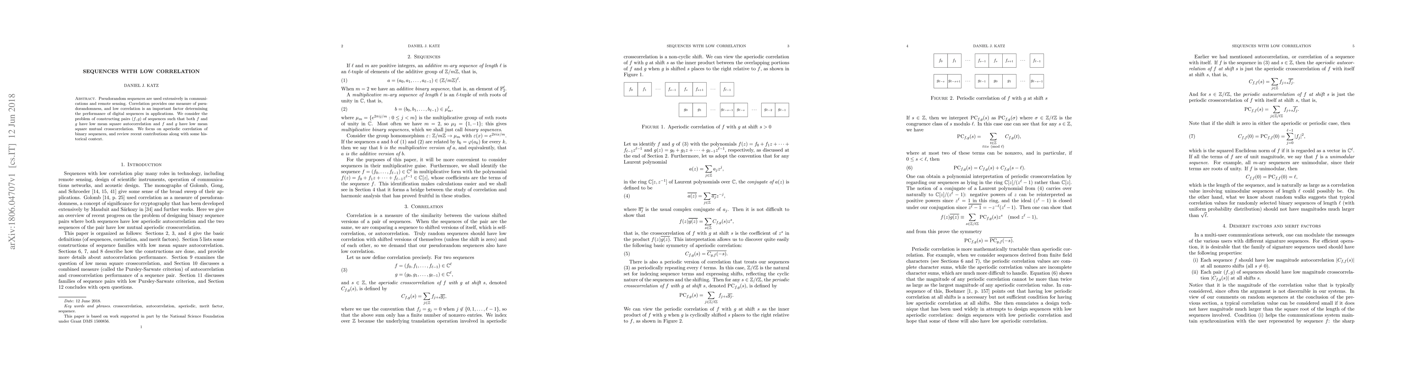 Pseudorandom sequences are used extensively in communications and remote sensing. Correlation provides one measure of pseudorandomness, and low correlation is an important factor determining the performance of digital sequences in applications. We consider the problem of constructing pairs $(f,g)$ of sequences such that both $f$ and $g$ have low mean square autocorrelation and $f$ and $g$ have low mean square mutual crosscorrelation. We focus on aperiodic correlation of binary sequences, and review recent contributions along with some historical context.