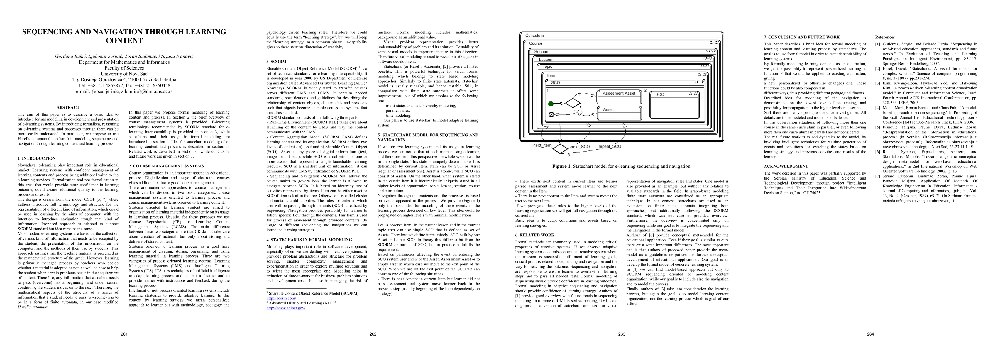 This paper proposes using Harel automata (statecharts) to formally model sequencing and navigation in e-learning systems, aiming to enhance the clarity and understanding of e-learning processes. The formal approach facilitates better reasoning about e-learning content and its delivery.