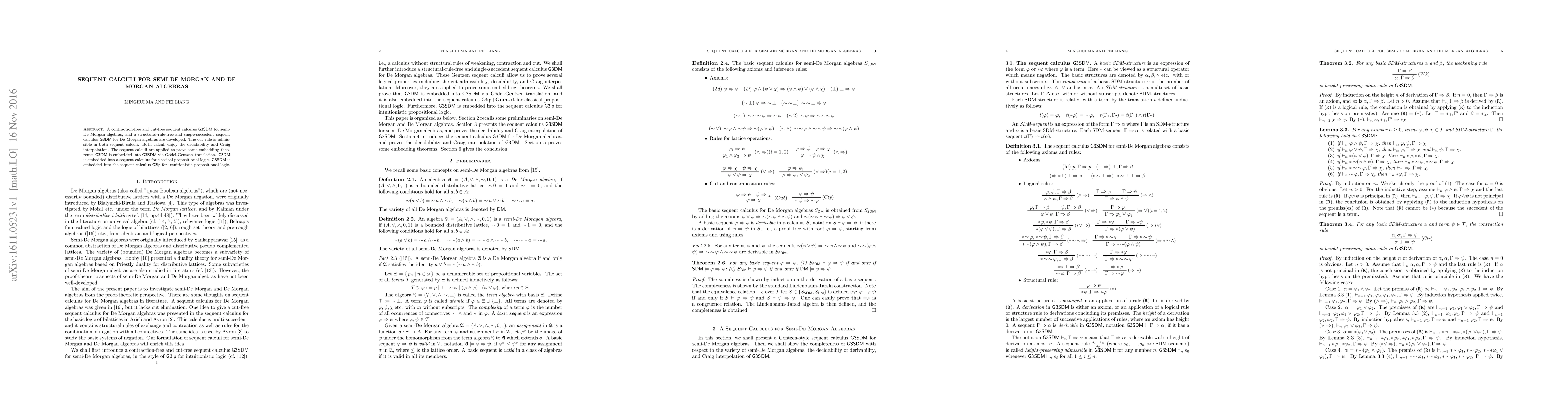 The development of sequent calculi for DeMorgan algebras and their applications in logic, algebra, and computer science.