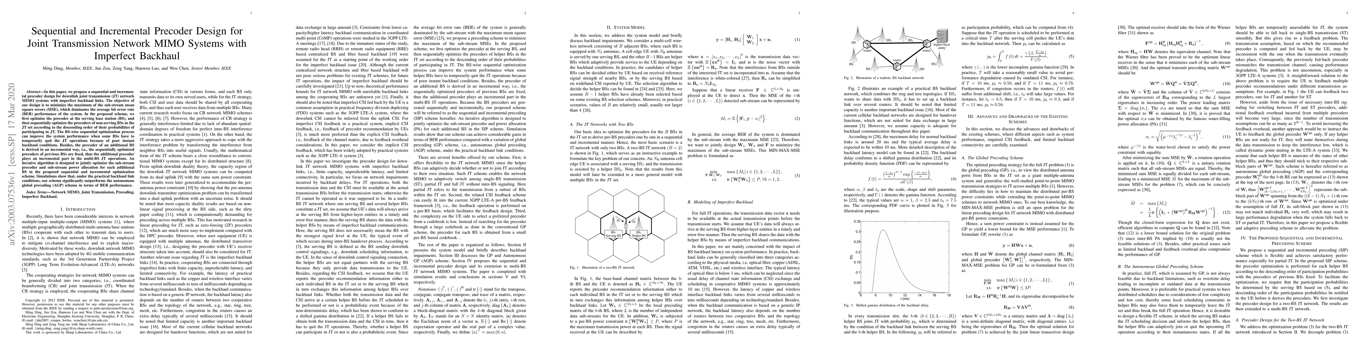 This paper proposes a sequential and incremental precoder design for joint transmission in network MIMO systems with imperfect backhaul, aiming to minimize sub-stream mean square errors to enhance BER performance. The scheme sequentially optimizes precoders at serving and non-serving base stations, improving performance under varying backhaul conditions.