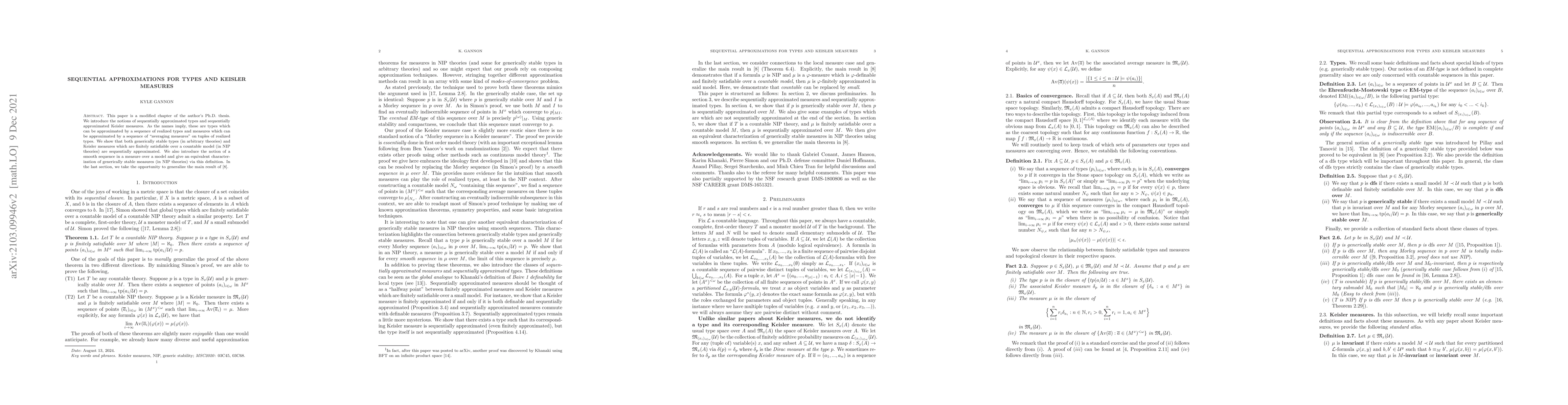 This paper introduces sequentially approximated types and Keisler measures, which are types and measures that can be approached by sequences of realized types and averaging measures, respectively. It demonstrates that generically stable types and finitely satisfiable Keisler measures are sequentially approximated, and generalizes a key result from previous work.