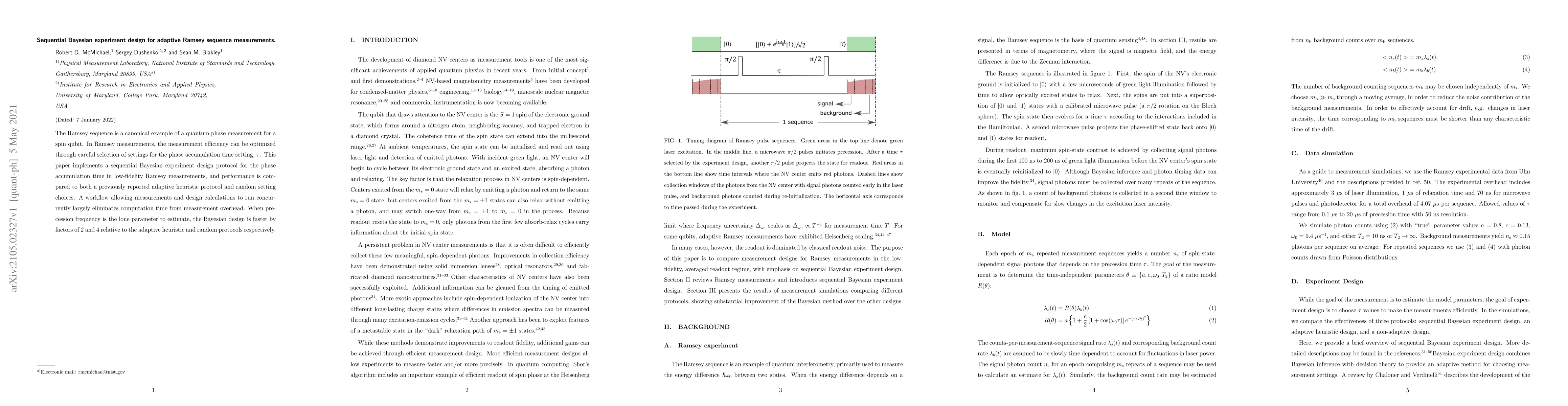 This paper proposes a sequential Bayesian experiment design for optimizing phase accumulation time in low-fidelity Ramsey measurements, demonstrating significant speed improvements over adaptive heuristic and random protocols, with a concurrent workflow reducing computation time overhead. The Bayesian design is notably faster, achieving factors of 2 and 4 improvement compared to the heuristic and random methods, respectively.