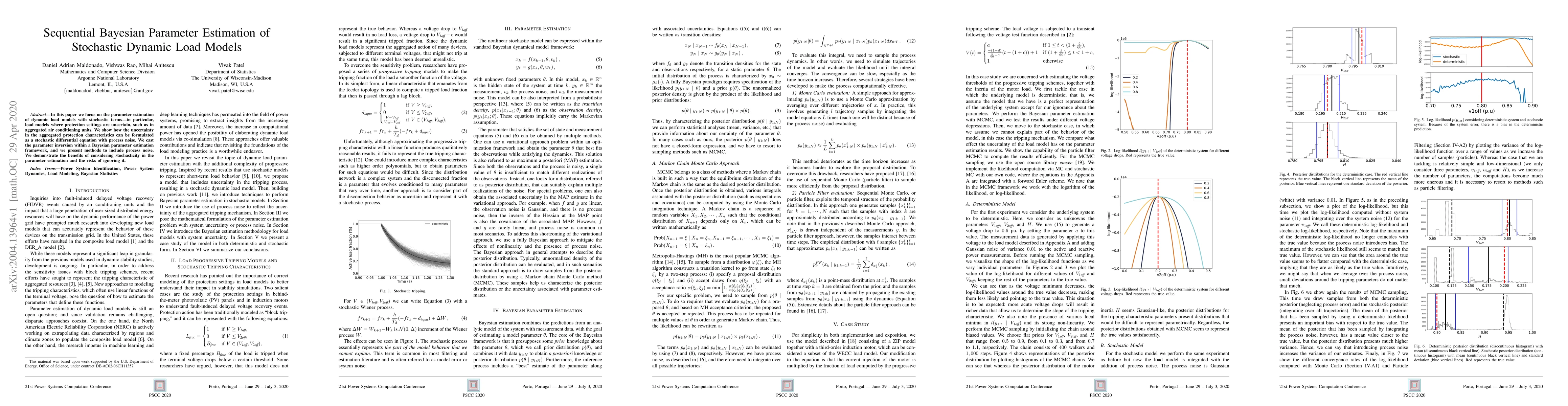 This paper presents a Bayesian framework for estimating parameters in stochastic dynamic load models, particularly for uncertain protection settings in aggregated air conditioning units. It highlights the importance of incorporating process noise and demonstrates the risks of neglecting stochasticity in parameter estimation.