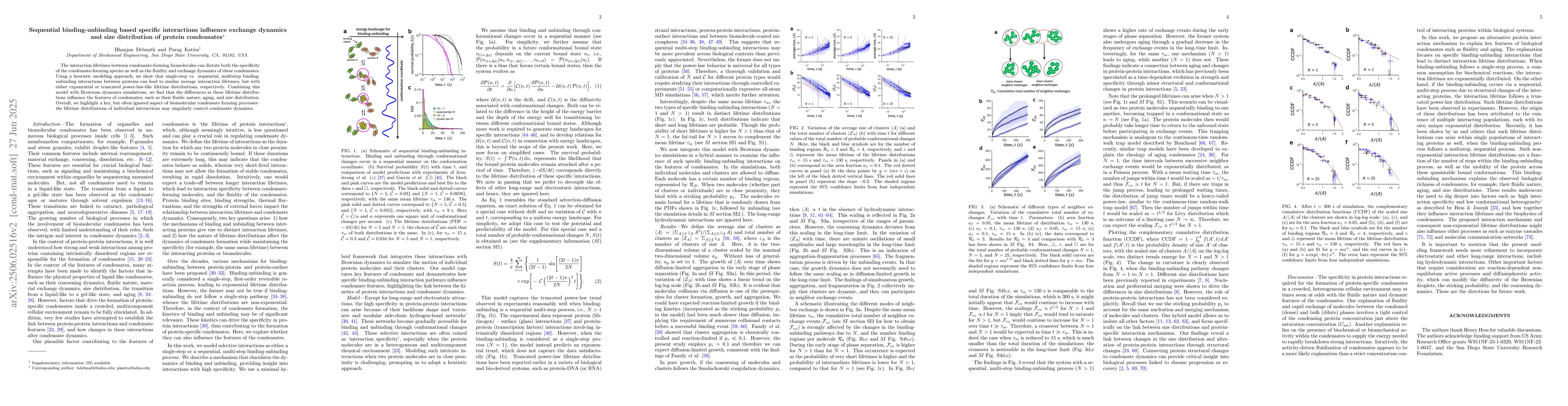 The research investigates single-step and sequential multi-step mechanisms for protein binding-unbinding interactions, modeling their lifetimes heuristically and combining the model with Brownian dynamics simulations to understand condensate dynamics.