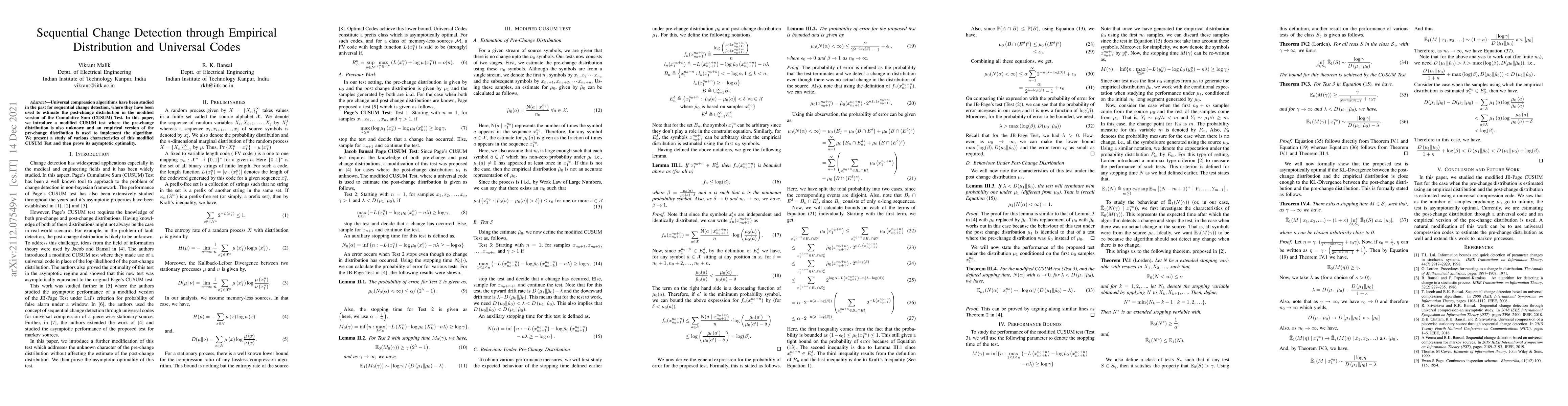 Universal compression algorithms have been studied in the past for sequential change detection, where they have been used to estimate the post-change distribution in the modified version of the Cumulative Sum (CUSUM) Test. In this paper, we introduce a modified CUSUM test where the pre-change distribution is also unknown and an empirical version of the pre-change distribution is used to implement the algorithm. We present a study of various characteristics of this modified CUSUM Test and then prove its asymptotic optimality.