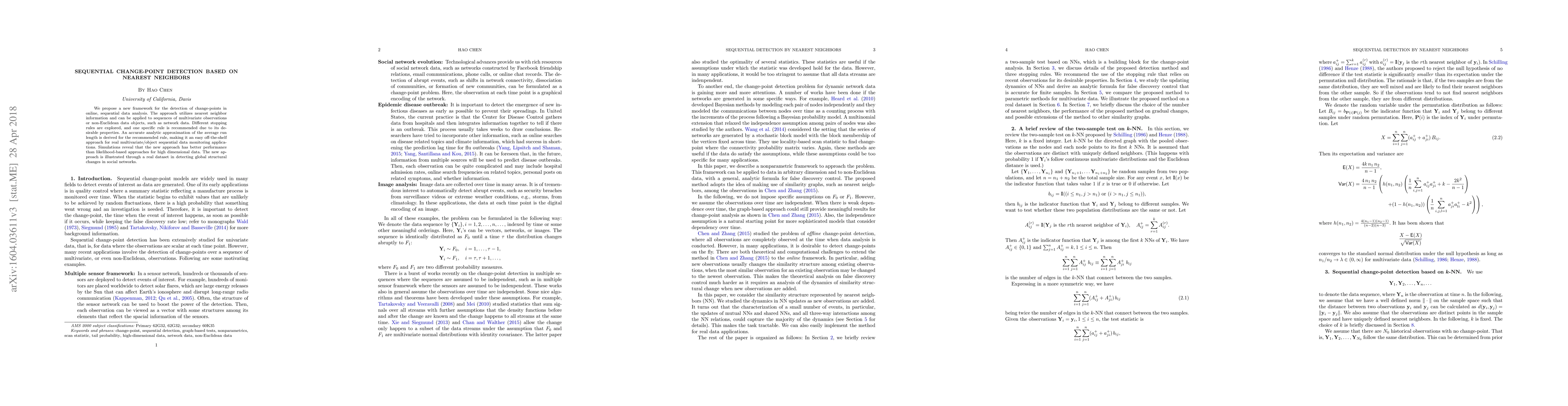 We propose a new framework for the detection of change-points in online, sequential data analysis. The approach utilizes nearest neighbor information and can be applied to sequences of multivariate observations or non-Euclidean data objects, such as network data. Different stopping rules are explored, and one specific rule is recommended due to its desirable properties. An accurate analytic approximation of the average run length is derived for the recommended rule, making it an easy off-the-shelf approach for real multivariate/object sequential data monitoring applications. Simulations reveal that the new approach has better performance than likelihood-based approaches for high dimensional data. The new approach is illustrated through a real dataset in detecting global structural changes in social networks.