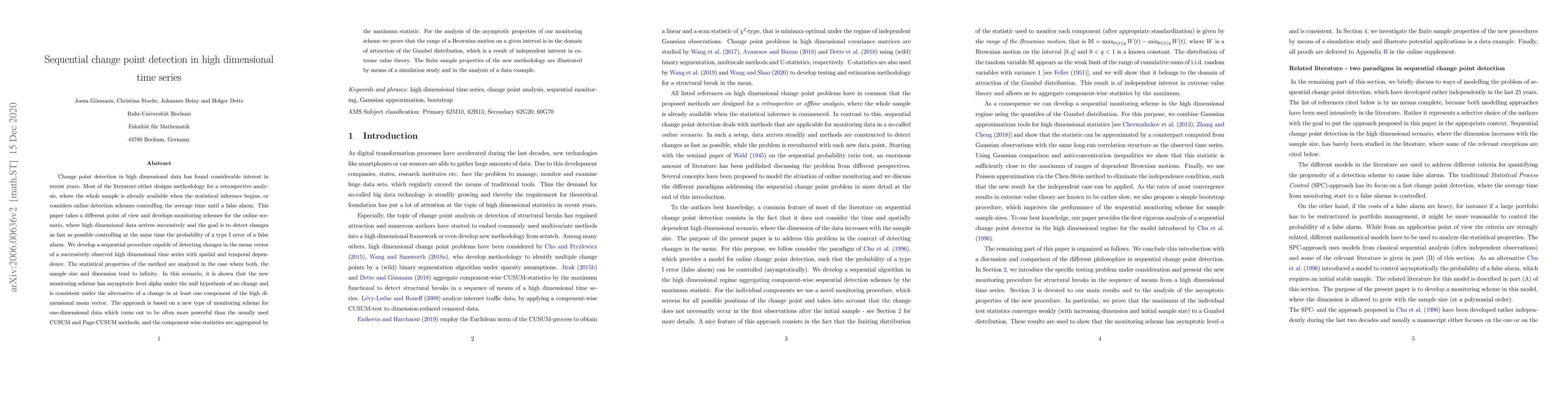 Change point detection in high dimensional data has found considerable interest in recent years. Most of the literature either designs methodology for a retrospective analysis, where the whole sample is already available when the statistical inference begins, or considers online detection schemes controlling the average time until a false alarm. This paper takes a different point of view and develops monitoring schemes for the online scenario, where high dimensional data arrives successively and the goal is to detect changes as fast as possible controlling at the same time the probability of a type I error of a false alarm. We develop a sequential procedure capable of detecting changes in the mean vector of a successively observed high dimensional time series with spatial and temporal dependence. The statistical properties of the method are analyzed in the case where both, thesample size and dimension tend to infinity. In this scenario, it is shown that the new monitoring scheme has asymptotic level alpha under the null hypothesis of no change and is consistent under the alternative of a change in at least one component of the high dimensional mean vector. The approach is based on a new type of monitoring scheme for one-dimensional data which turns out to be often more powerful than the usually used CUSUM and Page-CUSUM methods, and the component-wise statistics are aggregated by the maximum statistic. For the analysis of the asymptotic properties of our monitoring scheme we prove that the range of a Brownian motion on a given interval is in the domain of attraction of the Gumbel distribution, which is a result of independent interest in extreme value theory. The finite sample properties of the new methodology are illustrated by means of a simulation study and in the analysis of a data example.