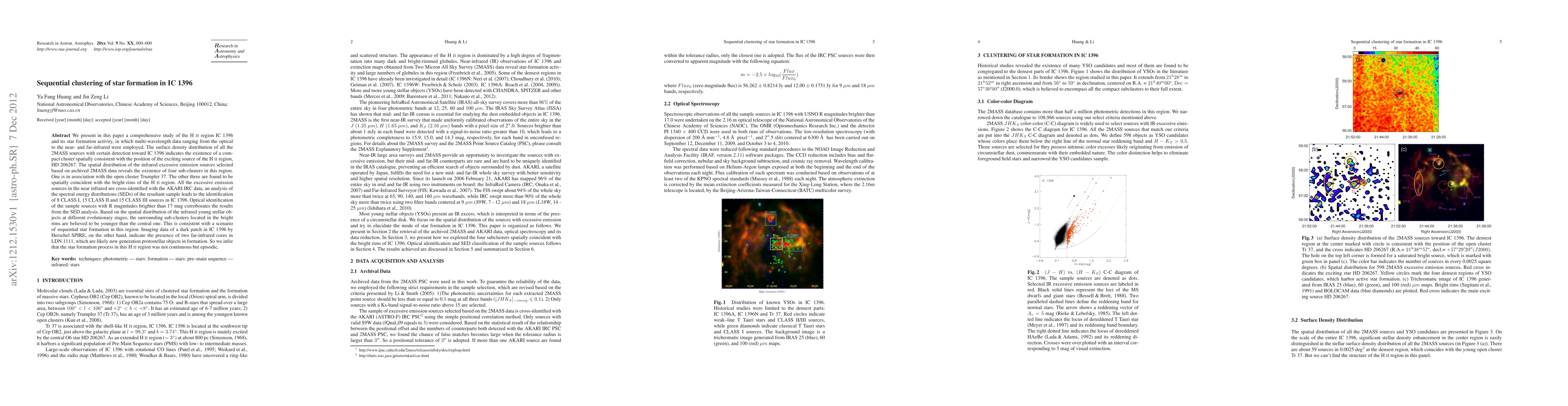 This study identifies sequential star formation in IC 1396, a H II region, with four sub-clusters of young stellar objects forming in a non-continuous process, as revealed by multi-wavelength data.