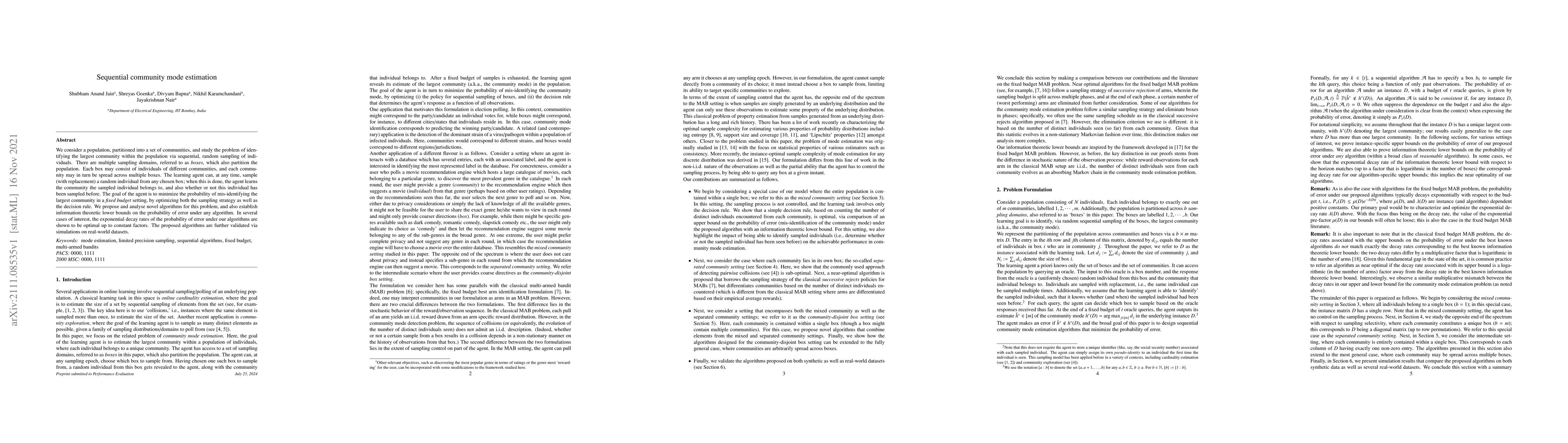 Researchers developed algorithms to identify the largest community in a population by sequentially sampling individuals from different boxes, aiming to minimize errors within a fixed budget. Their methods offer optimal exponential decay rates and have been validated through simulations on real-world datasets.