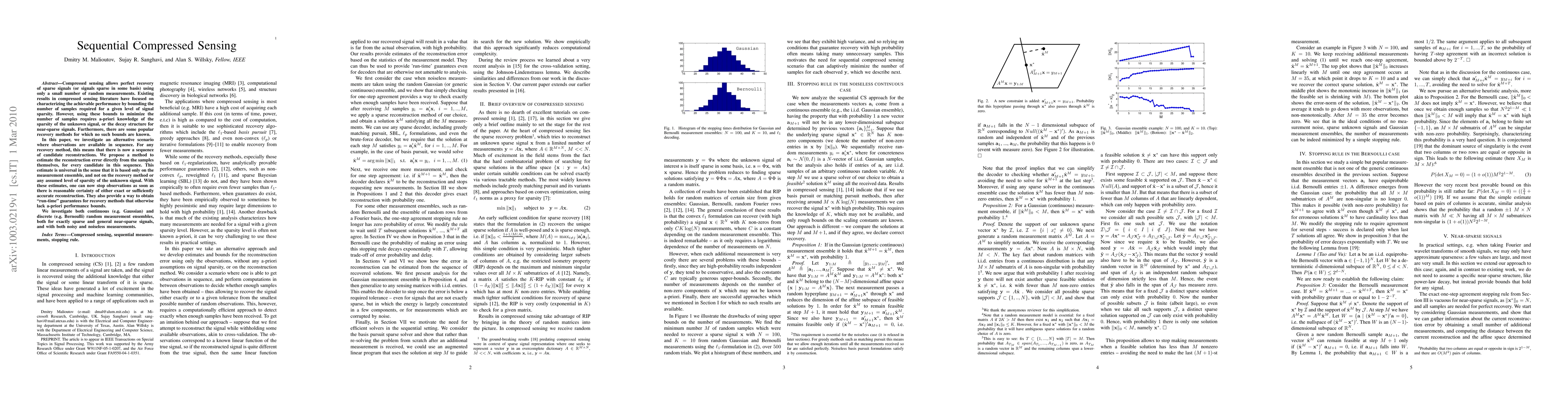 Compressed sensing allows perfect recovery of sparse signals (or signals sparse in some basis) using only a small number of random measurements. Existing results in compressed sensing literature have focused on characterizing the achievable performance by bounding the number of samples required for a given level of signal sparsity. However, using these bounds to minimize the number of samples requires a-priori knowledge of the sparsity of the unknown signal, or the decay structure for near-sparse signals. Furthermore, there are some popular recovery methods for which no such bounds are known. In this paper, we investigate an alternative scenario where observations are available in sequence. For any recovery method, this means that there is now a sequence of candidate reconstructions. We propose a method to estimate the reconstruction error directly from the samples themselves, for every candidate in this sequence. This estimate is universal in the sense that it is based only on the measurement ensemble, and not on the recovery method or any assumed level of sparsity of the unknown signal. With these estimates, one can now stop observations as soon as there is reasonable certainty of either exact or sufficiently accurate reconstruction. They also provide a way to obtain "run-time" guarantees for recovery methods that otherwise lack a-priori performance bounds. We investigate both continuous (e.g. Gaussian) and discrete (e.g. Bernoulli) random measurement ensembles, both for exactly sparse and general near-sparse signals, and with both noisy and noiseless measurements.