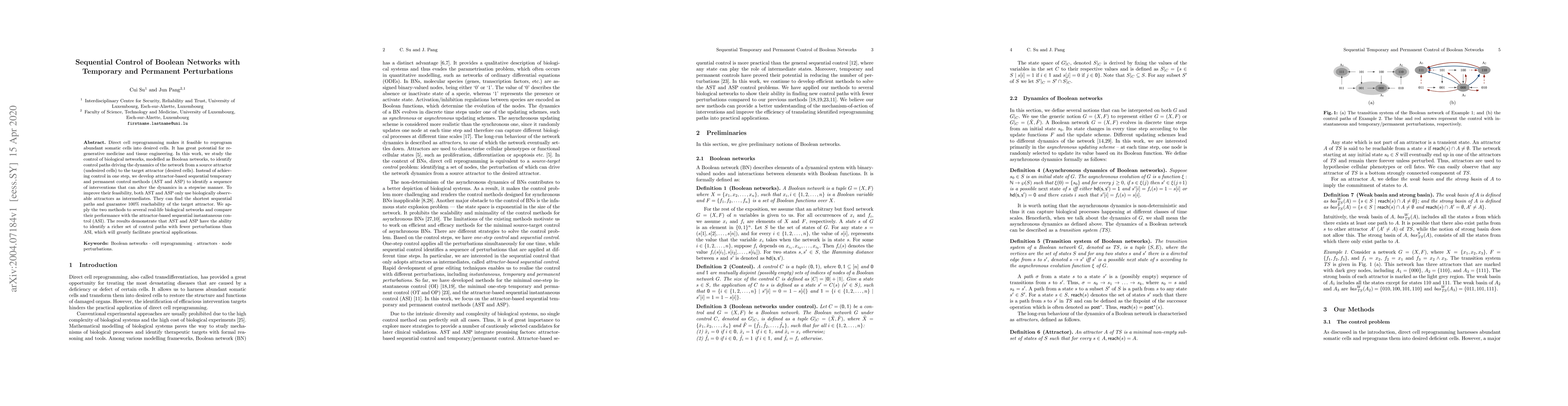 Direct cell reprogramming makes it feasible to reprogram abundant somatic cells into desired cells. It has great potential for regenerative medicine and tissue engineering. In this work, we study the control of biological networks, modelled as Boolean networks, to identify control paths driving the dynamics of the network from a source attractor (undesired cells) to the target attractor (desired cells). Instead of achieving control in one step, we develop attractor-based sequential temporary and permanent control methods (AST and ASP) to identify a sequence of interventions that can alter the dynamics in a stepwise manner. To improve their feasibility, both AST and ASP only use biologically observable attractors as intermediates. They can find the shortest sequential paths and guarantee 100% reachability of the target attractor. We apply the two methods to several real-life biological networks and compare their performance with the attractor-based sequential instantaneous control (ASI). The results demonstrate that AST and ASP have the ability to identify a richer set of control paths with fewer perturbations than ASI, which will greatly facilitate practical applications.