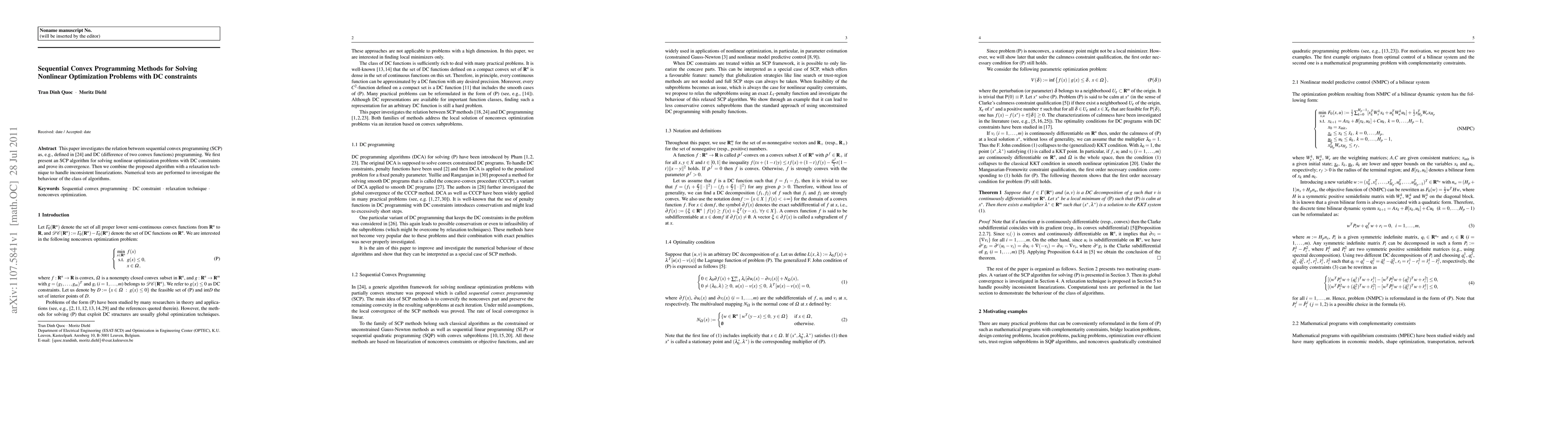 This paper proposes a sequential convex programming (SCP) algorithm for solving nonlinear optimization problems with difference of convex (DC) constraints, proves its convergence, and combines it with a relaxation technique for inconsistent linearizations, with numerical tests validating the effectiveness of the approach.