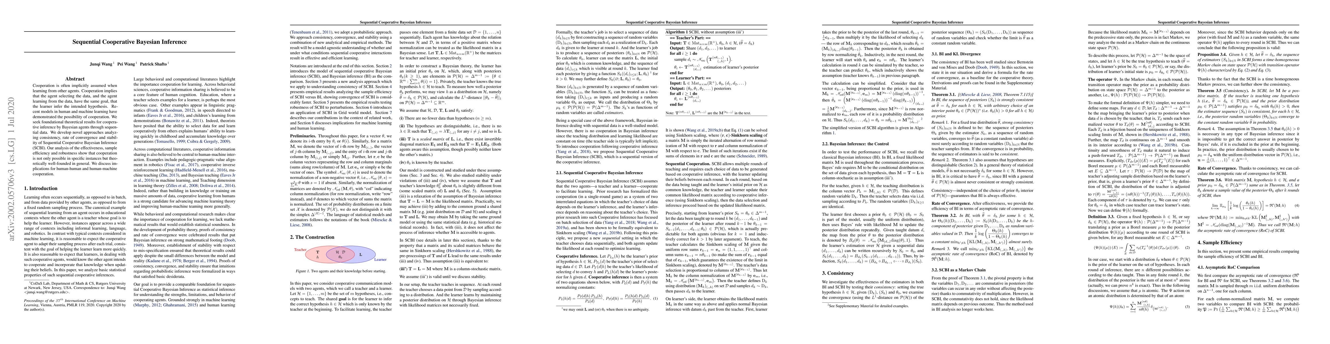 This paper develops theoretical foundations for Sequential Cooperative Bayesian Inference (SCBI), demonstrating that cooperation between agents learning from shared data is consistent, converges at optimal rates, and is robust. The analysis highlights the general viability and practical implications for both human-human and human-machine cooperative learning scenarios.