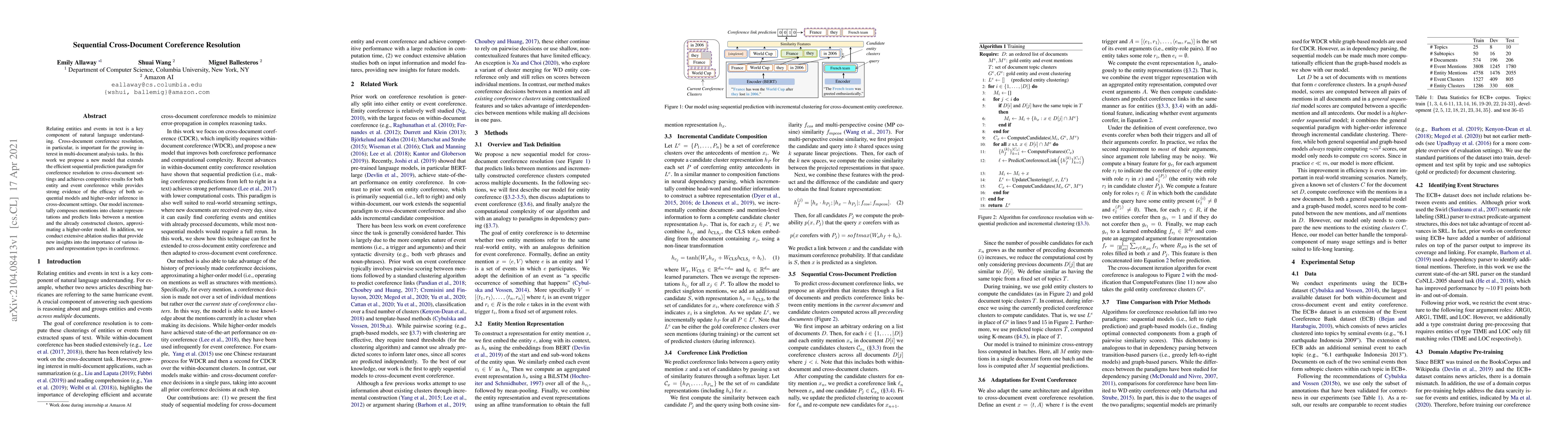 This research proposes a sequential model for cross-document coreference resolution, achieving competitive results for both entity and event coreference. The model incrementally builds clusters of mentions and predicts links, showing the effectiveness of sequential prediction and higher-order inference in multi-document analysis.