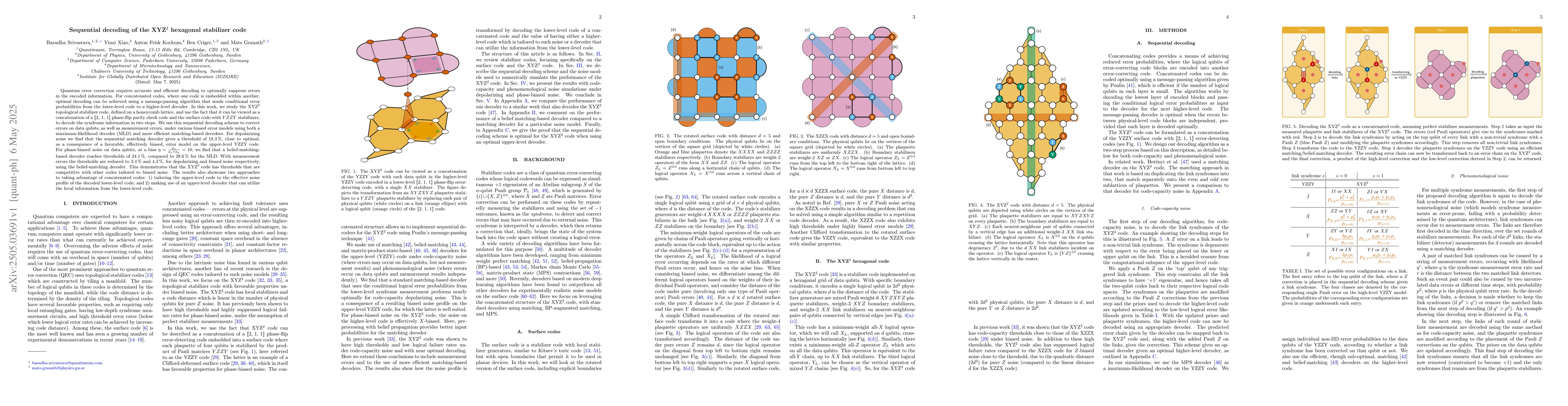 The paper presents a novel sequential decoding strategy for the XYZ^2 code, combining optimal decoding of the lower-level J2,1,1K code with efficient matching and belief-matching decoders for the higher-level YZZY code.