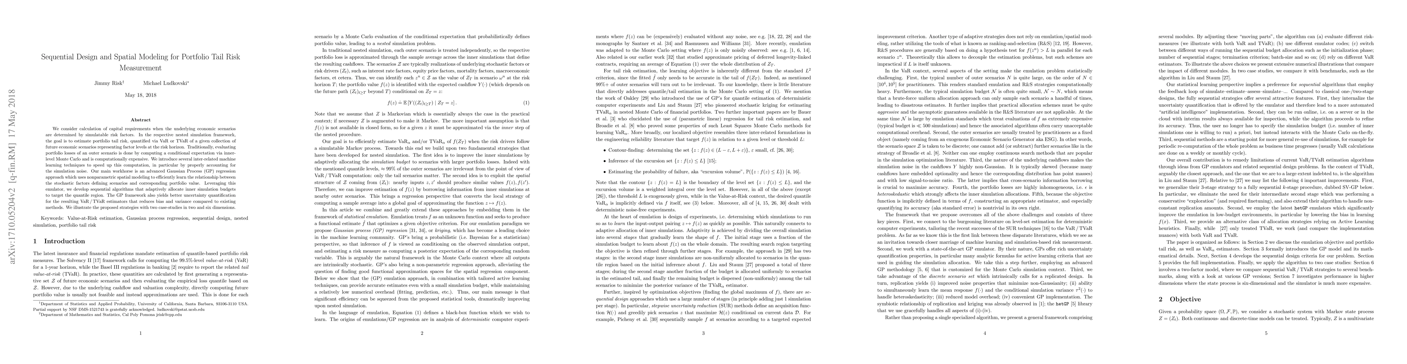 This paper proposes advanced Gaussian Process regression techniques to efficiently estimate portfolio tail risk via VaR or TVaR in a nested simulation framework, significantly reducing computational costs and improving uncertainty quantification compared to traditional methods. The approach leverages sequential algorithms to adaptively allocate simulation budgets and effectively models the relationship between risk factors and portfolio values.