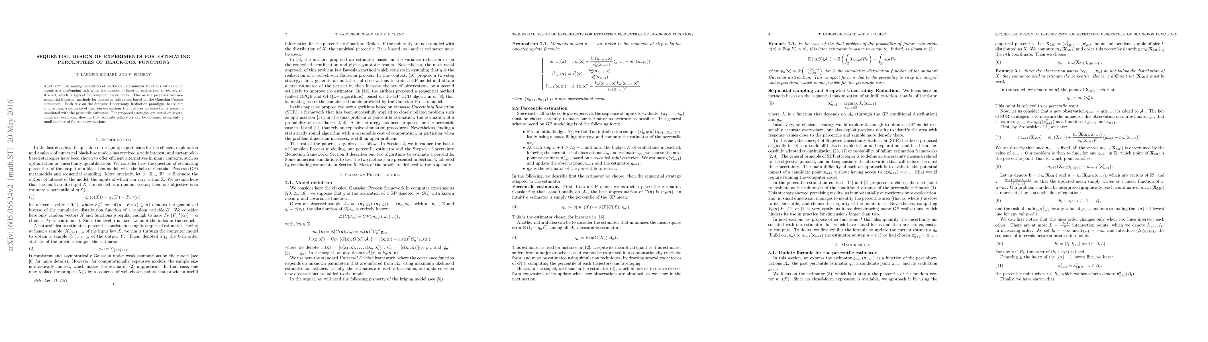This paper introduces two sequential Bayesian methods for estimating percentiles of black-box functions under limited evaluations, utilizing Gaussian Process metamodeling and the Stepwise Uncertainty Reduction paradigm. The proposed strategies demonstrate accurate estimation with minimal function evaluations through numerical examples.