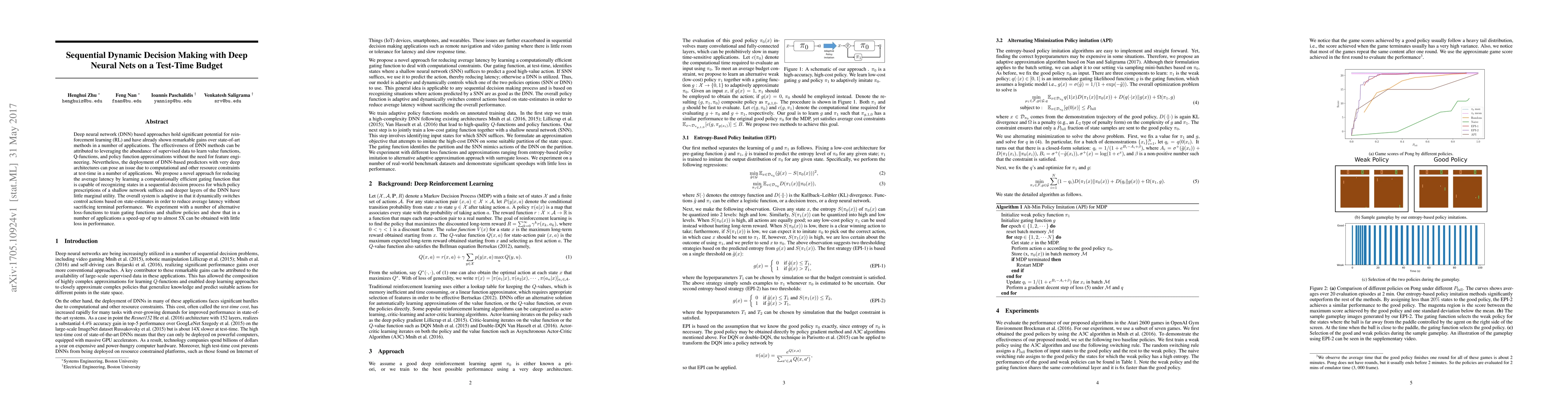 Deep neural network (DNN) based approaches hold significant potential for reinforcement learning (RL) and have already shown remarkable gains over state-of-art methods in a number of applications. The effectiveness of DNN methods can be attributed to leveraging the abundance of supervised data to learn value functions, Q-functions, and policy function approximations without the need for feature engineering. Nevertheless, the deployment of DNN-based predictors with very deep architectures can pose an issue due to computational and other resource constraints at test-time in a number of applications. We propose a novel approach for reducing the average latency by learning a computationally efficient gating function that is capable of recognizing states in a sequential decision process for which policy prescriptions of a shallow network suffices and deeper layers of the DNN have little marginal utility. The overall system is adaptive in that it dynamically switches control actions based on state-estimates in order to reduce average latency without sacrificing terminal performance. We experiment with a number of alternative loss-functions to train gating functions and shallow policies and show that in a number of applications a speed-up of up to almost 5X can be obtained with little loss in performance.
