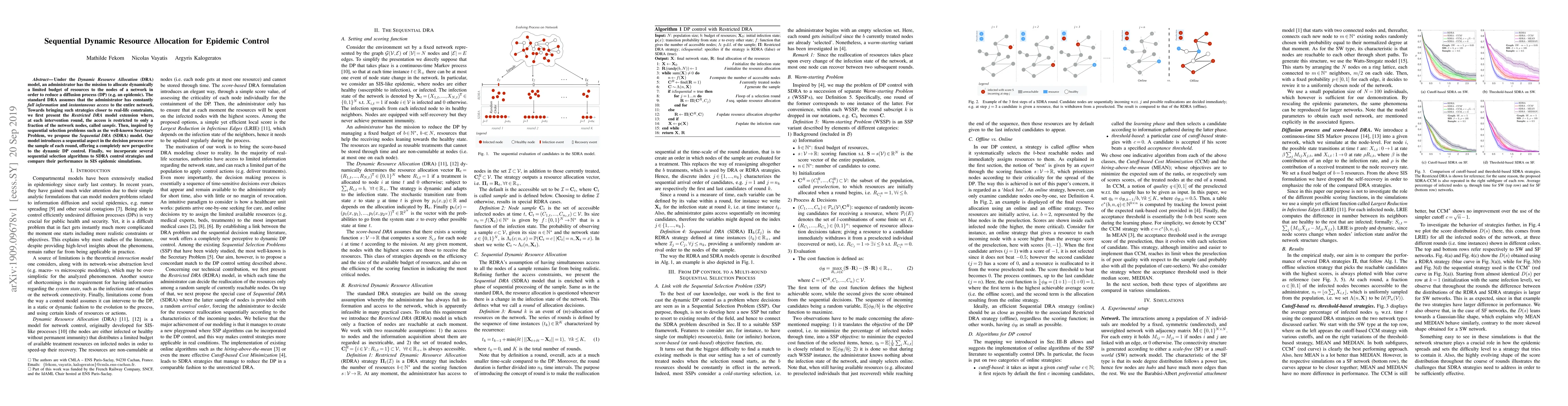 The model incorporates sequential selection algorithms to optimize epidemic control and compares their performance in simulations, providing a new perspective on dynamic epidemic control.