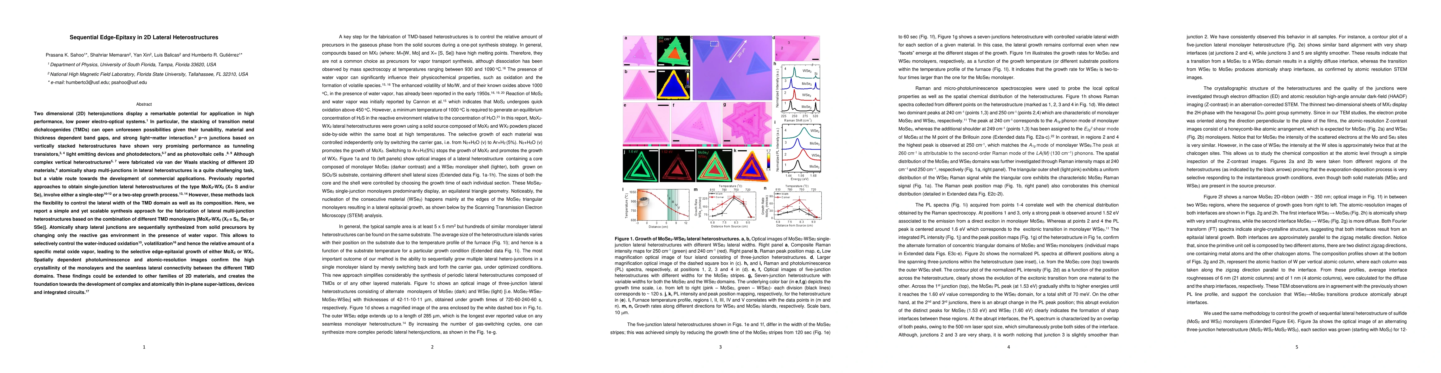 Two-dimensional (2D) heterojunctions display a remarkable potential for application in high performance, low power electro-optical systems. p-n junctions based on vertically stacked heterostructures have shown very promising performance as tunneling transistors, light emitting devices and photodetectors, and as photovoltaic cells . Although complex vertical heterostructures were fabricated via van der Waals stacking of different 2D materials, atomically sharp multi-junctions in lateral heterostructures is a quite challenging task, but a viable route towards the development of commercial applications. Previously reported approaches to obtain single-junction lateral heterostructures of the type MoX2-WX2 (X= S and/or Se), involve either a single-step or a two-step growth process. However, these methods lack the flexibility to control the lateral width of the TMD domain as well as its composition. Here, we report a simple and yet scalable synthesis approach for the fabrication of lateral multi-junction heterostructures based on the combination of different TMD monolayers [MoX2-WX2 (X2 = S2, Se2 or SSe)]. Atomically sharp lateral junctions are sequentially synthesized from solid precursors by changing only the reactive gas environment in the presence of water vapor. This allows to selectively control the water-induced oxidation, volatilization and hence the relative amount of a specific metal oxide vapor, leading to the selective edge-epitaxial growth of either MoX2 or WX2. Spatially dependent photoluminescence and atomic-resolution images confirm the high crystallinity of the monolayers and the seamless lateral connectivity between the different TMD domains. These findings could be extended to other families of 2D materials, and creates the foundation towards the development of complex and atomically thin in-plane super-lattices, devices and integrated circuits.
