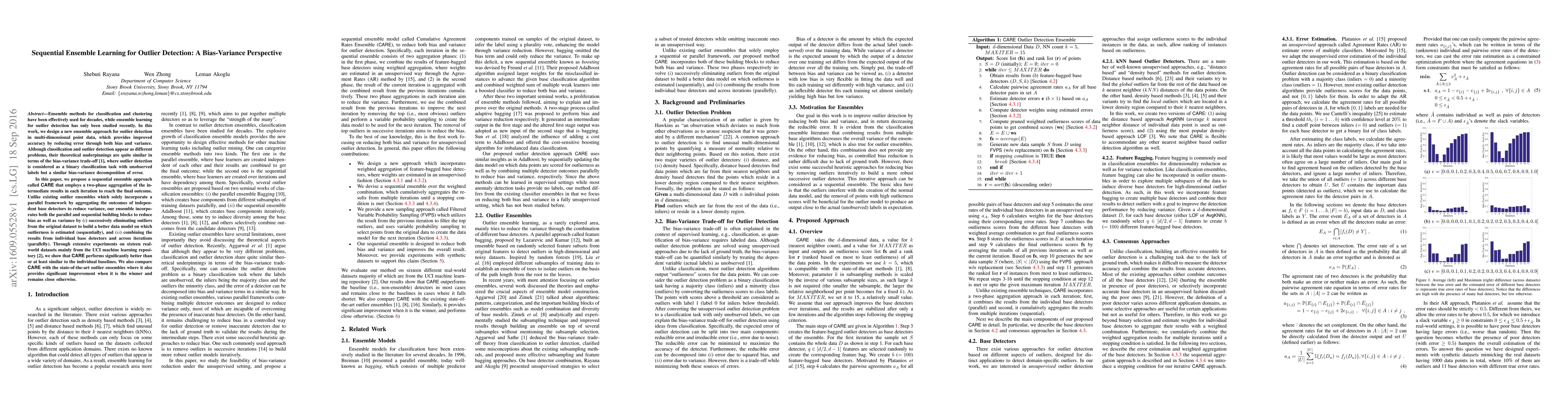 This paper introduces a novel sequential ensemble method called CARE for outlier detection, which combines both parallel and sequential aggregation to reduce both bias and variance. Experiments on sixteen real-world datasets demonstrate that CARE outperforms or matches existing baselines and state-of-the-art outlier ensembles.