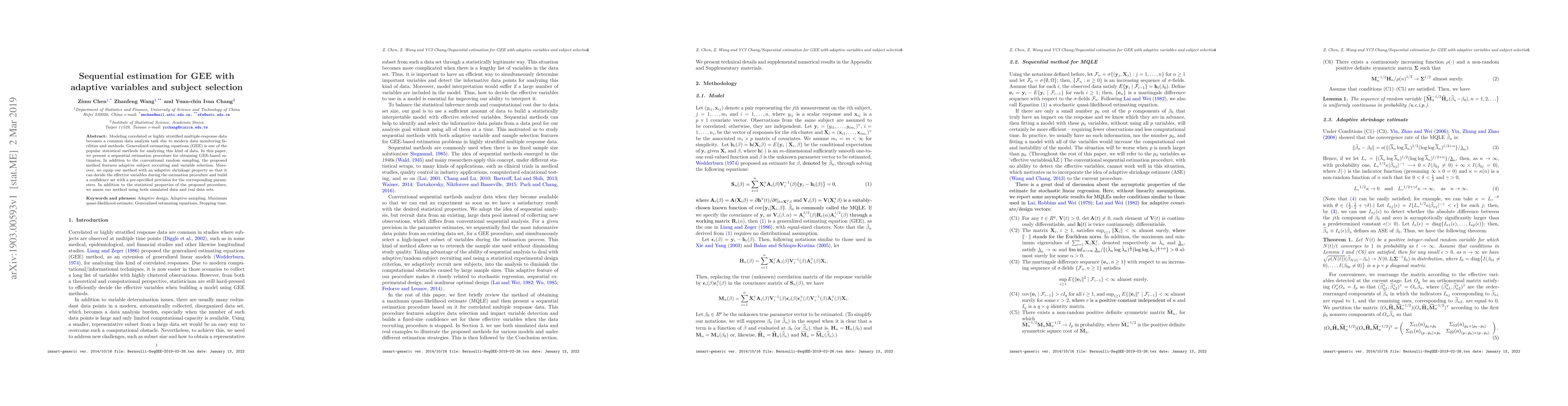 Modeling correlated or highly stratified multiple-response data becomes a common data analysis task due to modern data monitoring facilities and methods. Generalized estimating equations (GEE) is one of the popular statistical methods for analyzing this kind of data. In this paper, we present a sequential estimation procedure for obtaining GEE-based estimates. In addition to the conventional random sampling, the proposed method features adaptive subject recruiting and variable selection. Moreover, we equip our method with an adaptive shrinkage property so that it can decide the effective variables during the estimation procedure and build a confidence set with a pre-specified precision for the corresponding parameters. In addition to the statistical properties of the proposed procedure, we assess our method using both simulated data and real data sets.
