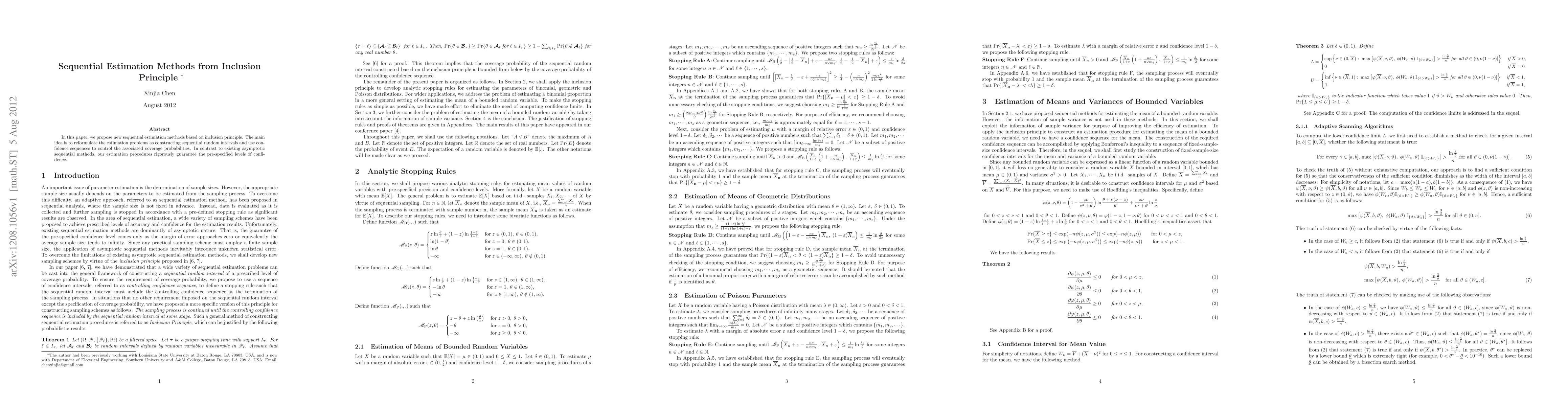 This paper introduces new sequential estimation methods grounded in the inclusion principle, reformulating estimation problems as constructing sequential random intervals and using confidence sequences to ensure precise coverage probabilities, offering a rigorous guarantee of pre-specified confidence levels unlike existing asymptotic methods.