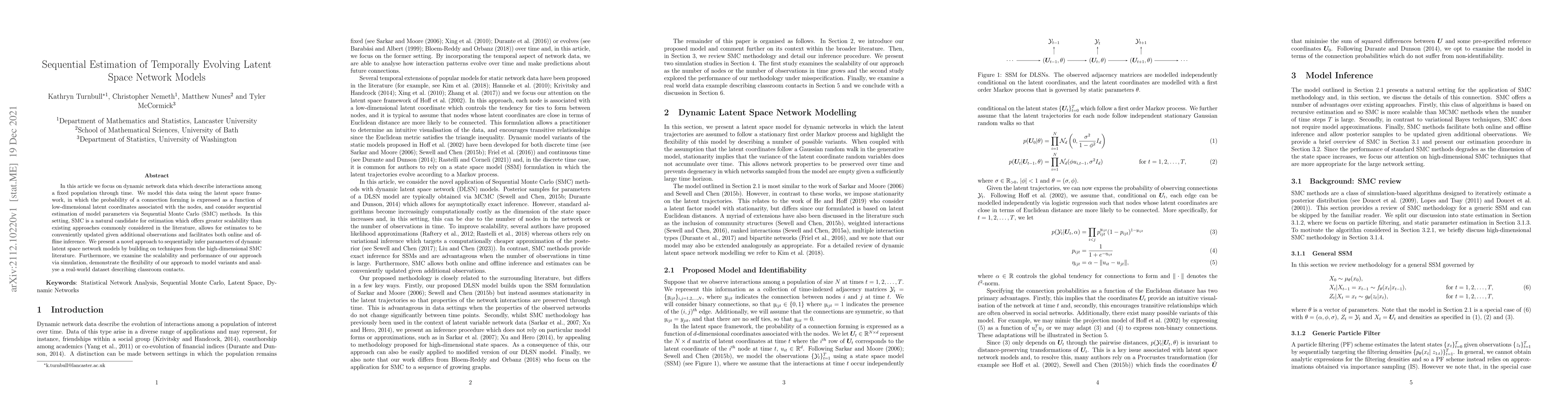 This paper introduces a novel method for sequential estimation of dynamic network models using the latent space framework and Sequential Monte Carlo (SMC) techniques. The approach offers scalability, facilitates online and offline inference, and is demonstrated through simulations and real-world data analysis.