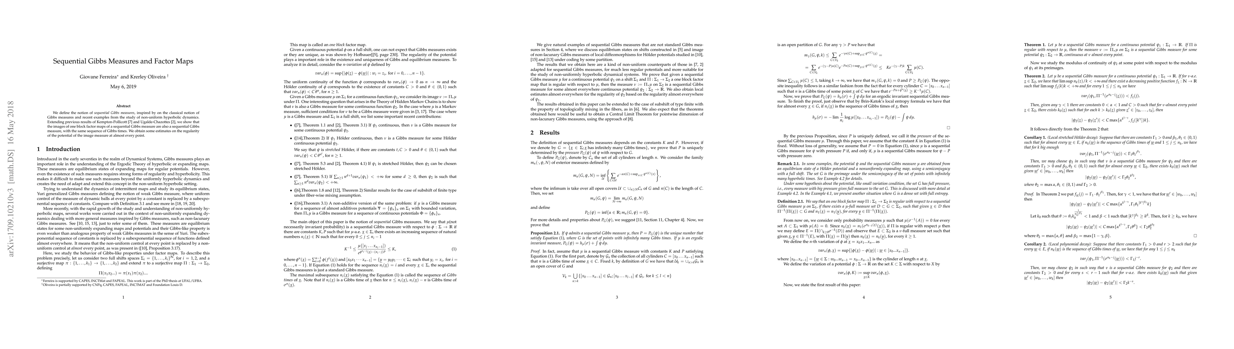 The paper defines sequential Gibbs measures and explores their properties under factor maps, extending previous results by Kempton-Pollicott and Ugalde-Chazottes.