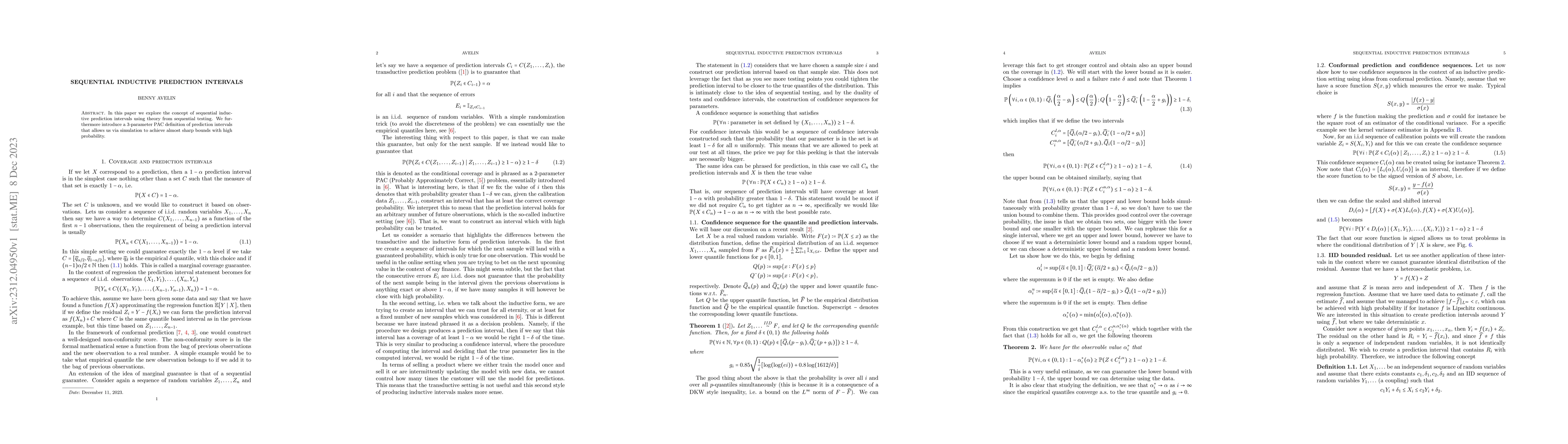 This paper investigates sequential inductive prediction intervals through the lens of sequential testing theory, introducing a 3-parameter PAC (Probably Approximately Correct) definition that enables near-optimal bounds with high probability through simulations.
