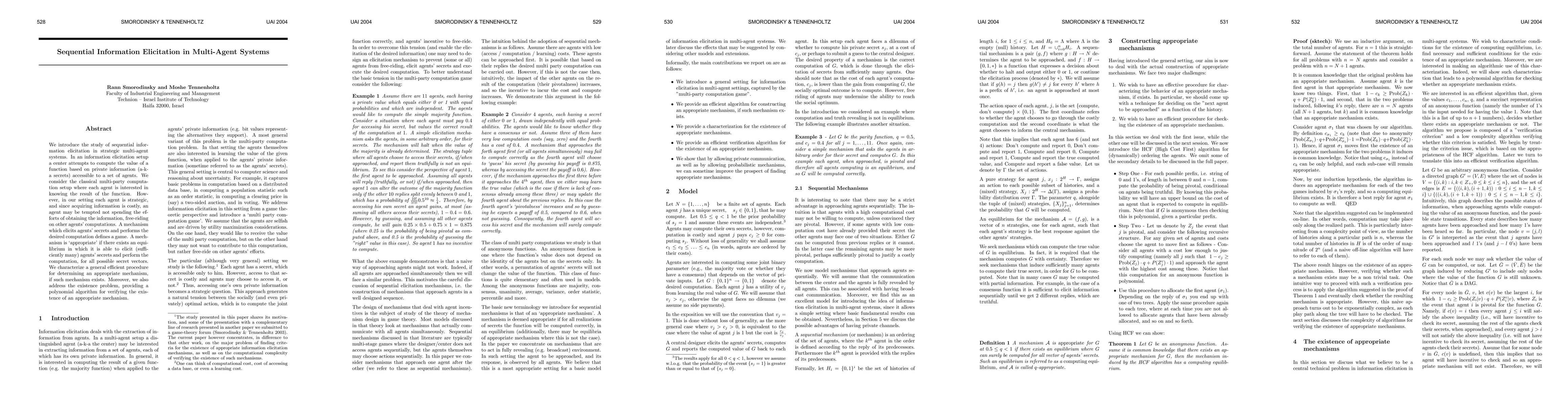 This paper studies sequential information elicitation in strategic multi-agent systems, focusing on mechanisms that can incentivize agents to reveal their private information while computing a function collectively. The authors propose a polynomial algorithm to determine the existence of an appropriate mechanism that can achieve this goal.