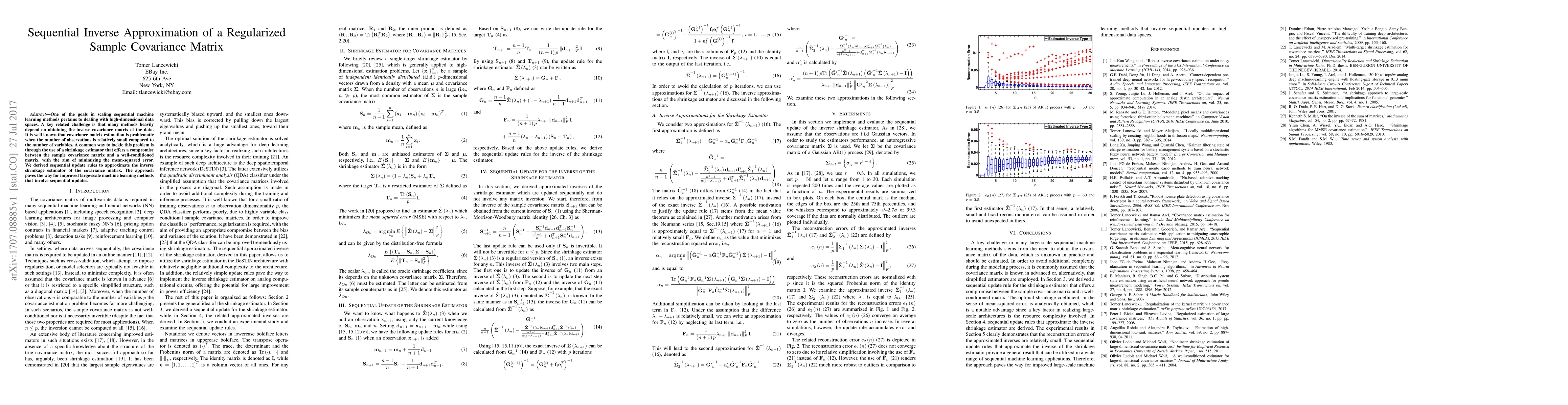 This paper proposes sequential update rules for approximating the inverse of a regularized sample covariance matrix, addressing the challenge of high-dimensional data where traditional methods struggle. The method uses shrinkage estimators to improve covariance matrix estimation, facilitating scalable machine learning applications.