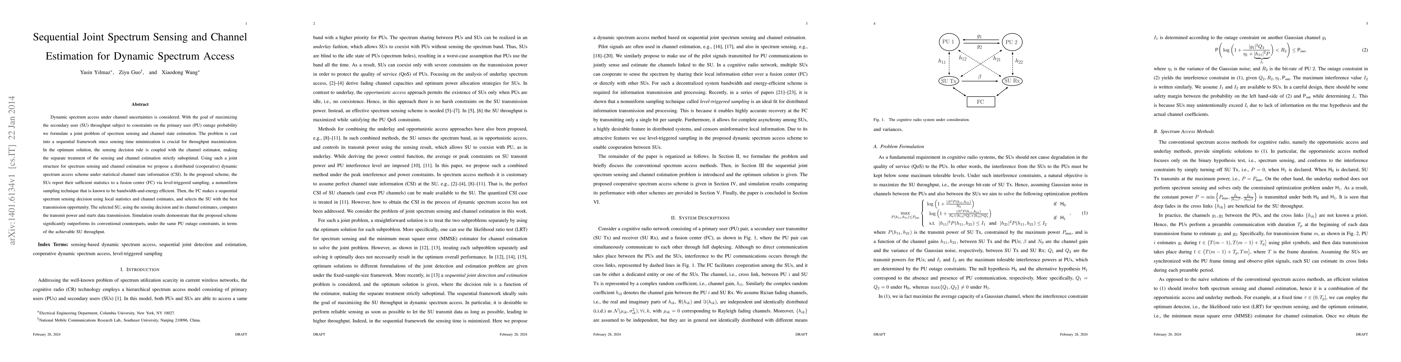This paper proposes a sequential joint spectrum sensing and channel estimation framework for dynamic spectrum access to maximize secondary user throughput while ensuring primary user outage constraints. The scheme employs a distributed cooperative approach with nonuniform sampling and a fusion center to make efficient spectrum sensing decisions, significantly improving secondary user throughput compared to conventional methods.