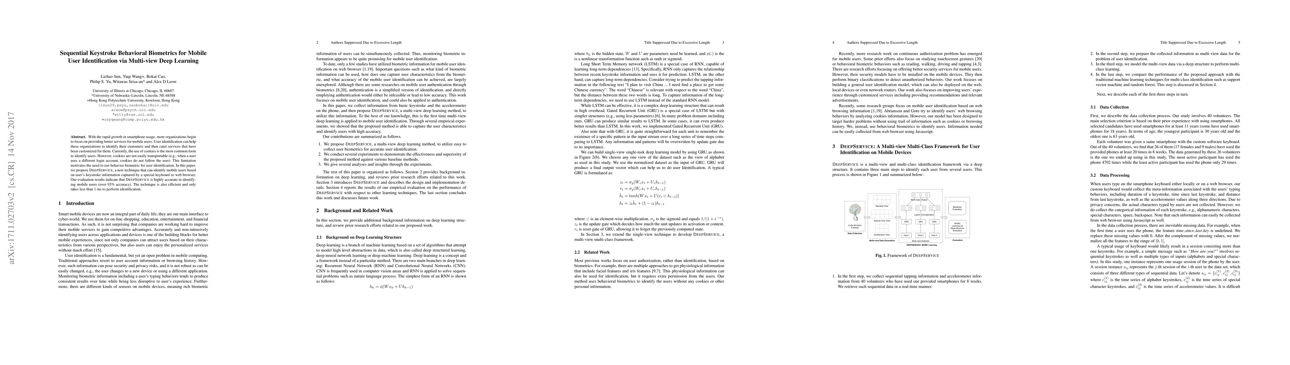 A new technique called DEEPSERVICE accurately identifies mobile users through keystroke behavioral biometrics with over 93% accuracy, outperforming traditional cookie-based methods.