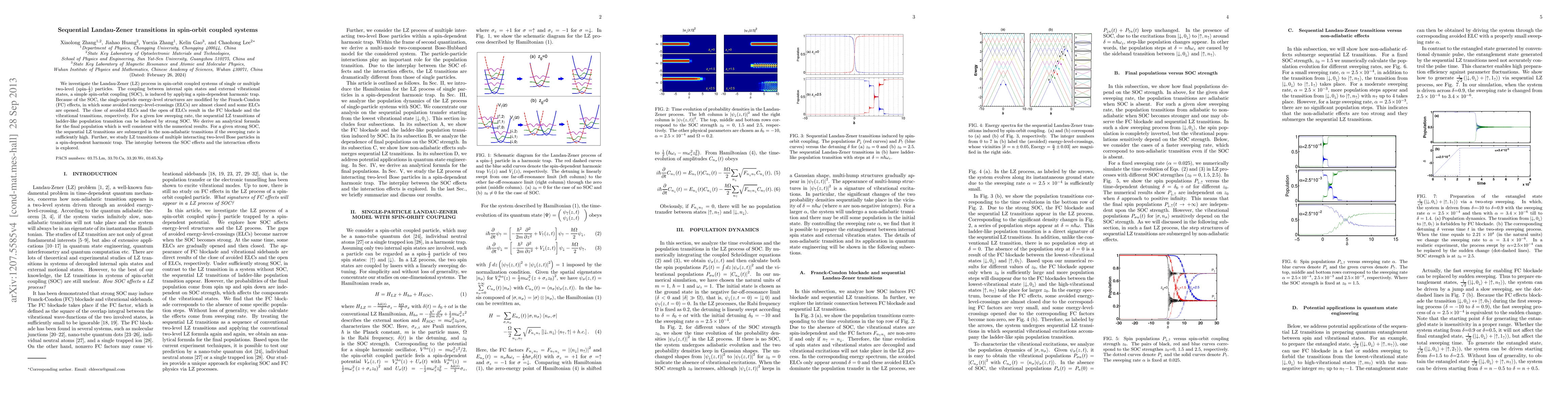 A theoretical framework was developed to describe the sequential LZ transitions induced by spin-orbit coupling in two-level particles.
