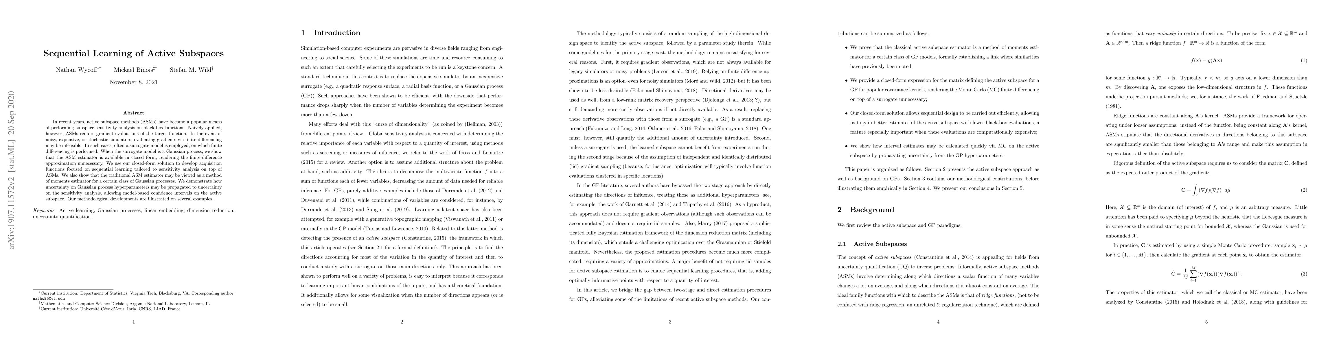 In recent years, active subspace methods (ASMs) have become a popular means of performing subspace sensitivity analysis on black-box functions. Naively applied, however, ASMs require gradient evaluations of the target function. In the event of noisy, expensive, or stochastic simulators, evaluating gradients via finite differencing may be infeasible. In such cases, often a surrogate model is employed, on which finite differencing is performed. When the surrogate model is a Gaussian process, we show that the ASM estimator is available in closed form, rendering the finite-difference approximation unnecessary. We use our closed-form solution to develop acquisition functions focused on sequential learning tailored to sensitivity analysis on top of ASMs. We also show that the traditional ASM estimator may be viewed as a method of moments estimator for a certain class of Gaussian processes. We demonstrate how uncertainty on Gaussian process hyperparameters may be propagated to uncertainty on the sensitivity analysis, allowing model-based confidence intervals on the active subspace. Our methodological developments are illustrated on several examples.