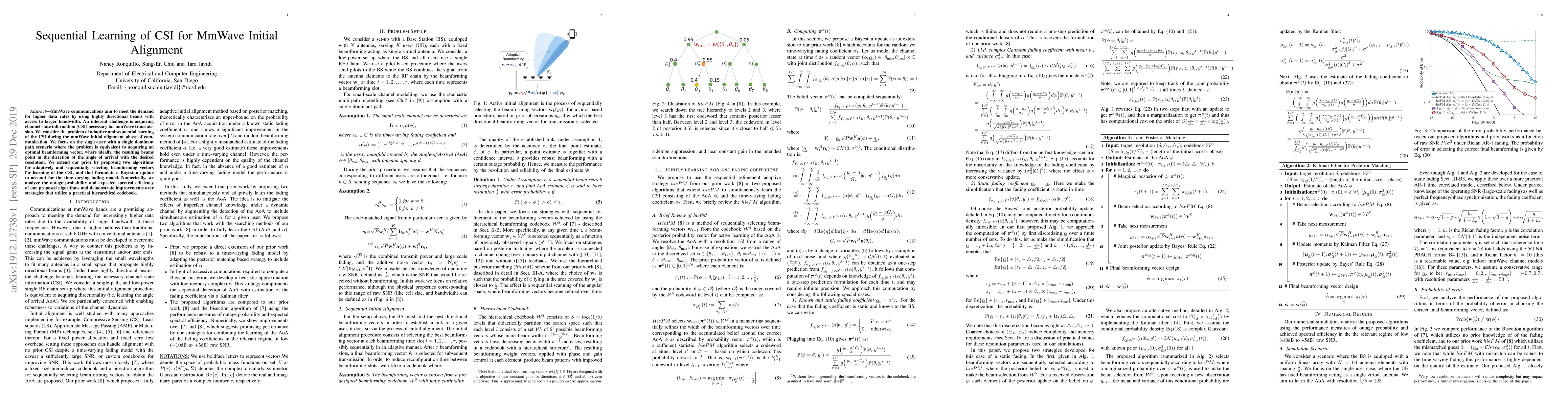 MmWave communications aim to meet the demand for higher data rates by using highly directional beams with access to larger bandwidth. An inherent challenge is acquiring channel state information (CSI) necessary for mmWave transmission. We consider the problem of adaptive and sequential learning of the CSI during the mmWave initial alignment phase of communication. We focus on the single-user with a single dominant path scenario where the problem is equivalent to acquiring an optimal beamforming vector, where ideally, the resulting beams point in the direction of the angle of arrival with the desired resolution. We extend our prior by proposing two algorithms for adaptively and sequentially selecting beamforming vectors for learning of the CSI, and that formulate a Bayesian update to account for the time-varying fading model. Numerically, we analyze the outage probability and expected spectral efficiency of our proposed algorithms and demonstrate improvements over strategies that utilize a practical hierarchical codebook.