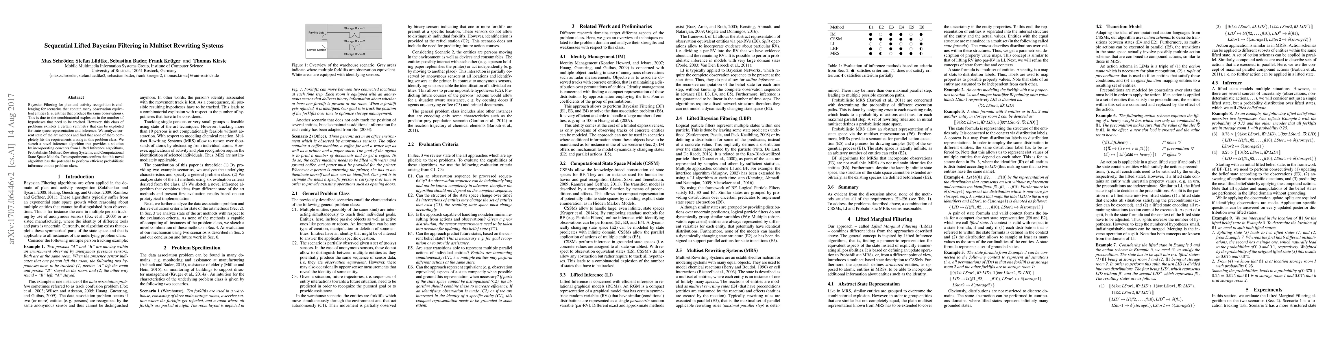 Bayesian Filtering for plan and activity recognition is challenging for scenarios that contain many observation equivalent entities (i.e. entities that produce the same observations). This is due to the combinatorial explosion in the number of hypotheses that need to be tracked. However, this class of problems exhibits a certain symmetry that can be exploited for state space representation and inference. We analyze current state of the art methods and find that none of them completely fits the requirements arising in this problem class. We sketch a novel inference algorithm that provides a solution by incorporating concepts from Lifted Inference algorithms, Probabilistic Multiset Rewriting Systems, and Computational State Space Models. Two experiments confirm that this novel algorithm has the potential to perform efficient probabilistic inference on this problem class.