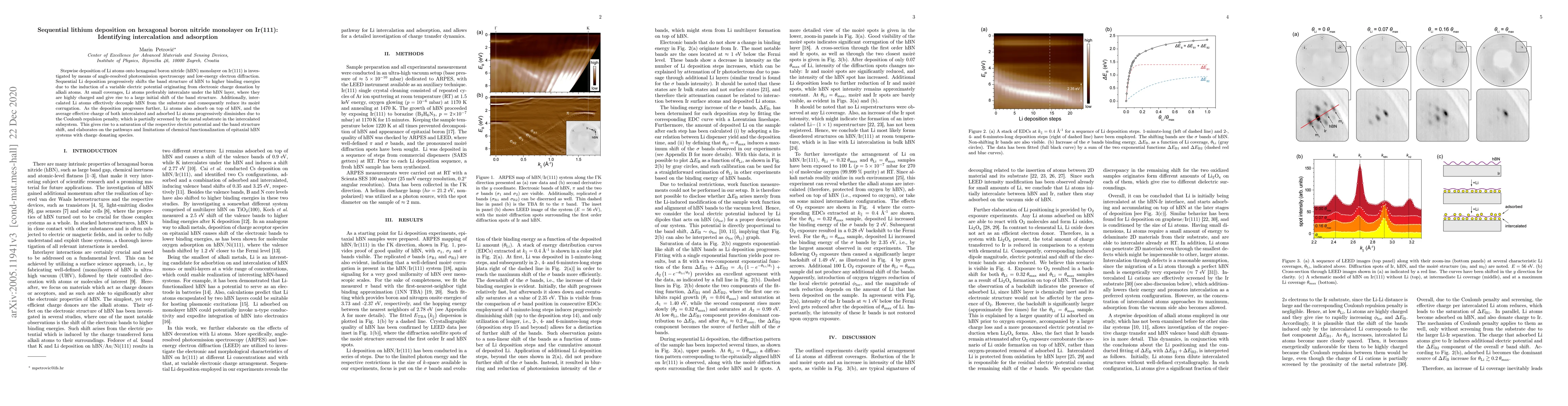 This study investigates the sequential lithium deposition on hBN monolayer on Ir(111) using angle-resolved photoemission spectroscopy, revealing that Li intercalates under hBN initially, inducing significant band structure shifts, while further deposition leads to Li adsorption atop hBN with diminishing charge due to Coulomb repulsion.