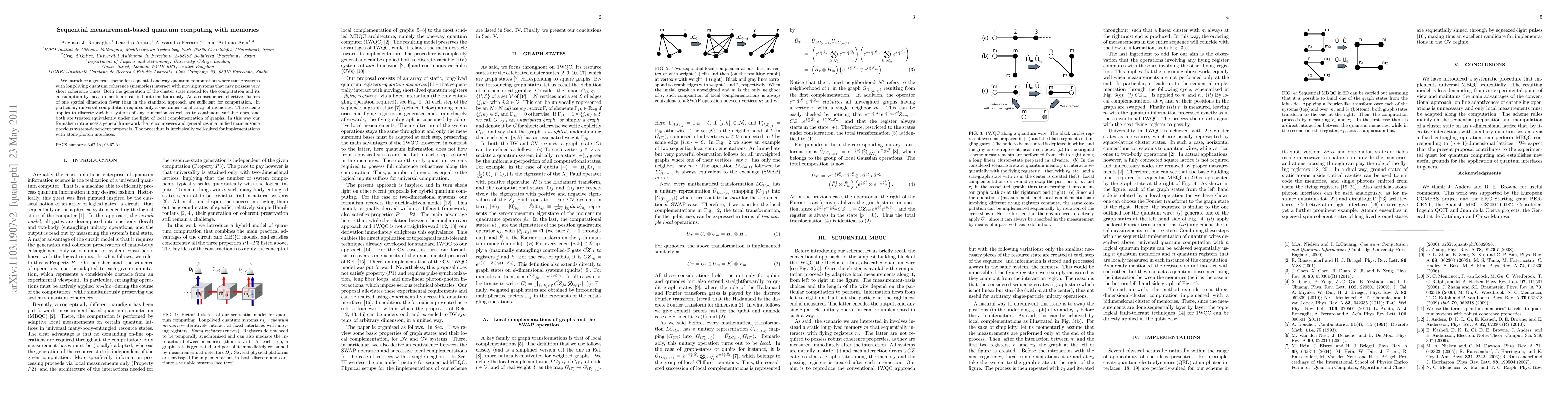 This paper proposes a novel scheme for sequential measurement-based quantum computing using static memories with long coherence times interacting with transient systems. It demonstrates that effective one-dimensional arrays of memories can achieve universal computation, simplifying the required cluster state structure.