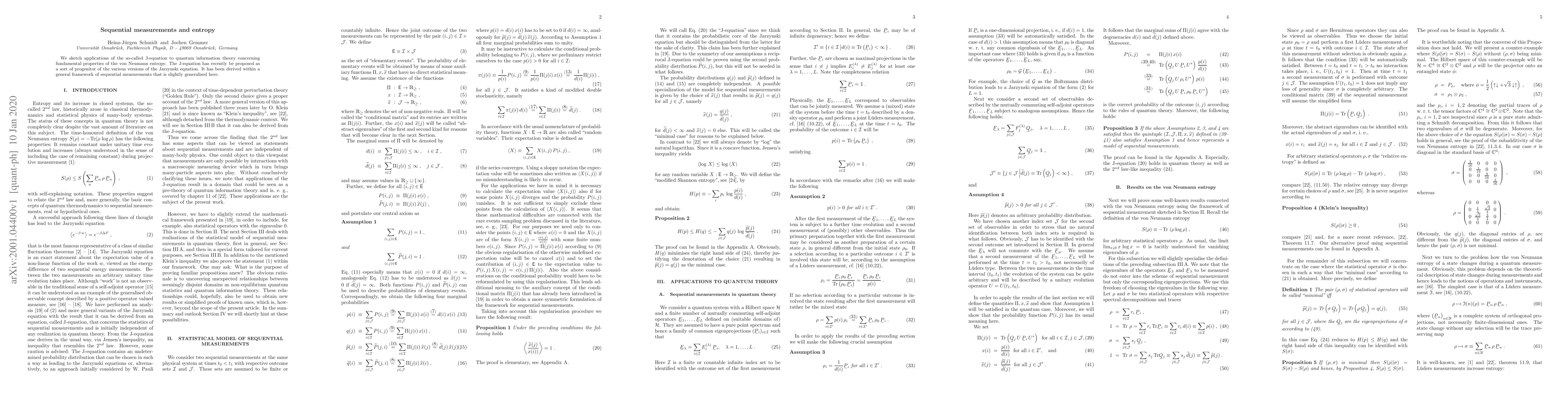 We sketch applications of the so-called J-equation to quantum information theory concerning fundamental properties of the von Neumann entropy. The J-equation has recently be proposed as a sort of progenitor of the various versions of the Jarzynski equation. It has been derived within a general framework of sequential measurements that is slightly generalised here.