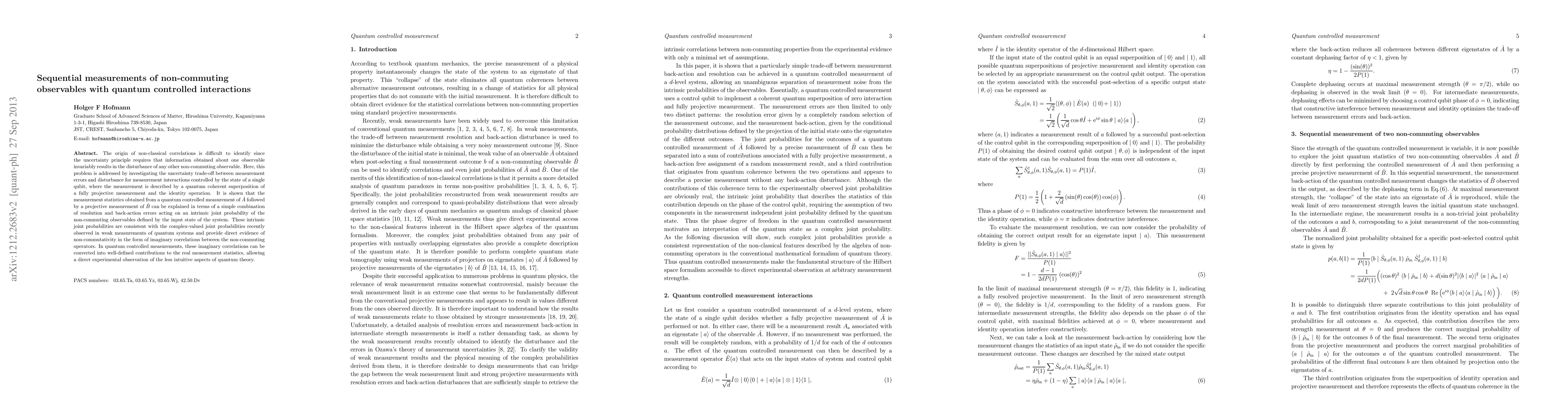 This paper investigates the uncertainty trade-off between measurement errors and disturbance in quantum systems using controlled interactions, demonstrating how intrinsic joint probabilities of non-commuting observables can be observed through quantum controlled measurements. It reveals imaginary correlations between non-commuting operators, providing a direct experimental observation of quantum theory's less intuitive aspects.