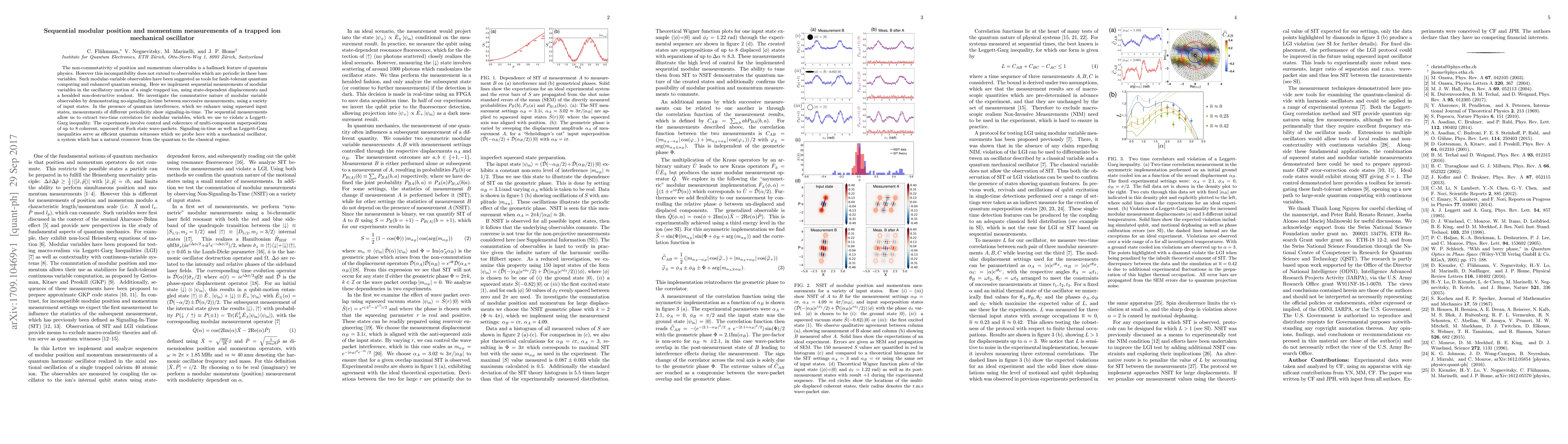 This paper investigates sequential modular position and momentum measurements in a trapped ion mechanical oscillator, demonstrating the commutative nature of modular variables and observing signaling-in-time under quantum interference. The study uses squeezed states to enhance quantum effects and violates a Leggett-Garg inequality, showcasing the potential of modular variables in quantum computing and sensing.