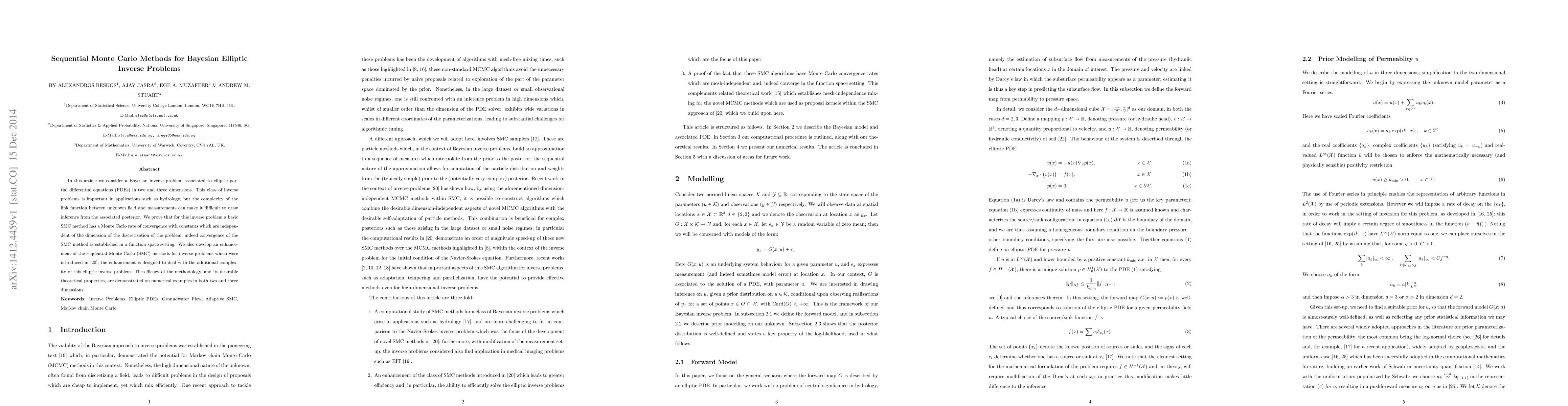 This paper develops enhanced Sequential Monte Carlo (SMC) methods for Bayesian inference in elliptic inverse problems governed by PDEs, proving their convergence rate and demonstrating their efficacy through numerical examples in two and three dimensions. The proposed SMC method is shown to maintain performance regardless of the problem's discretization dimension.