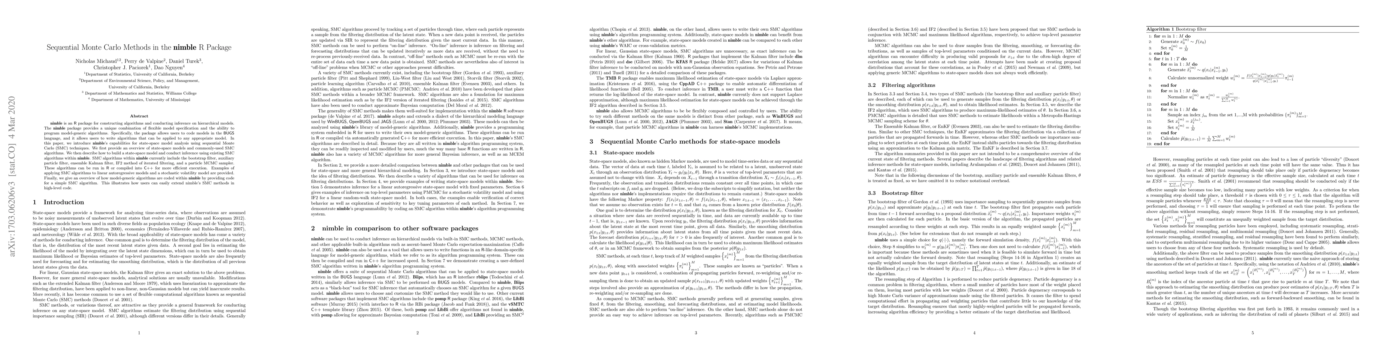 This paper introduces nimble R package's capabilities for state-space model analysis using sequential Monte Carlo (SMC) techniques, detailing various SMC algorithms and providing examples for linear autoregressive and stochastic volatility models. It also demonstrates how users can extend nimble's SMC methods with high-level code.