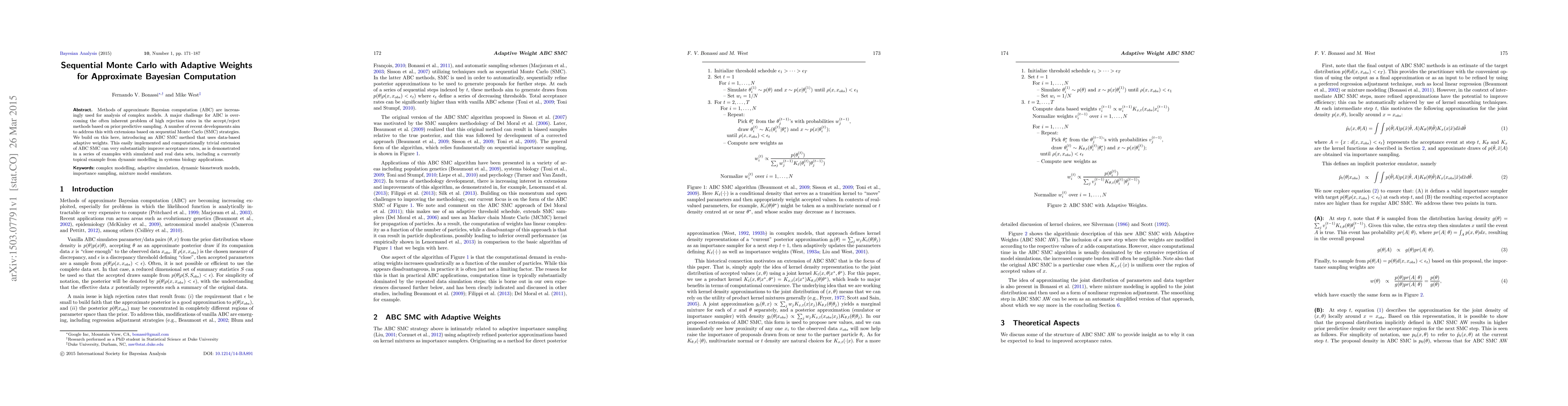 This paper proposes an adaptive weight-based sequential Monte Carlo method for approximate Bayesian computation (ABC) to tackle high rejection rates in traditional ABC. The new approach significantly improves acceptance rates, as demonstrated through simulations and real-world applications, including systems biology.