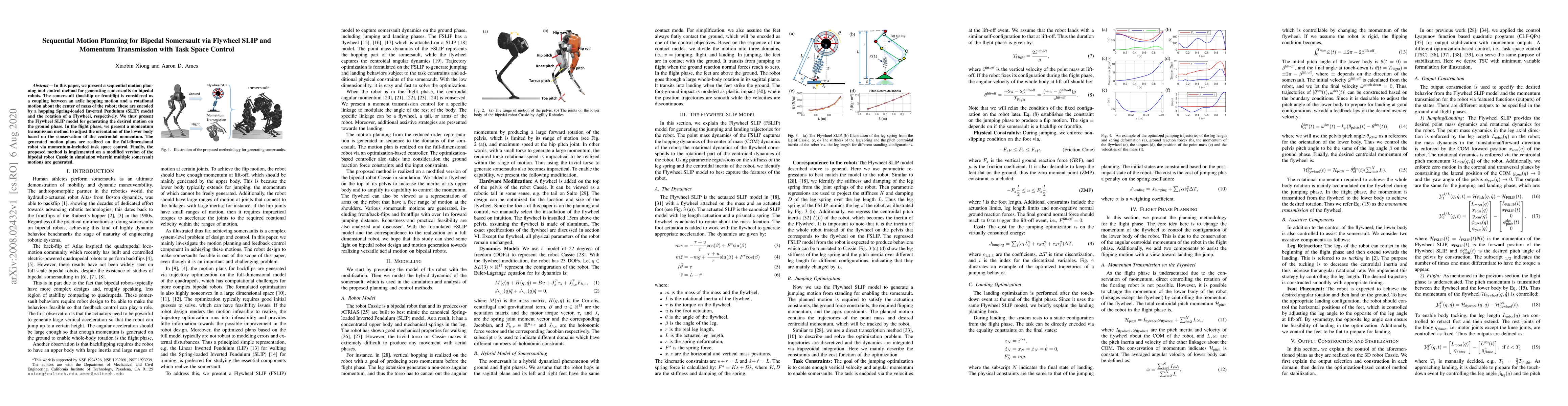 Researchers develop a method to plan and control somersaults on bipedal robots using a combination of Flywheel SLIP model and momentum transmission, enabling stable and efficient motion planning in both ground and flight phases.