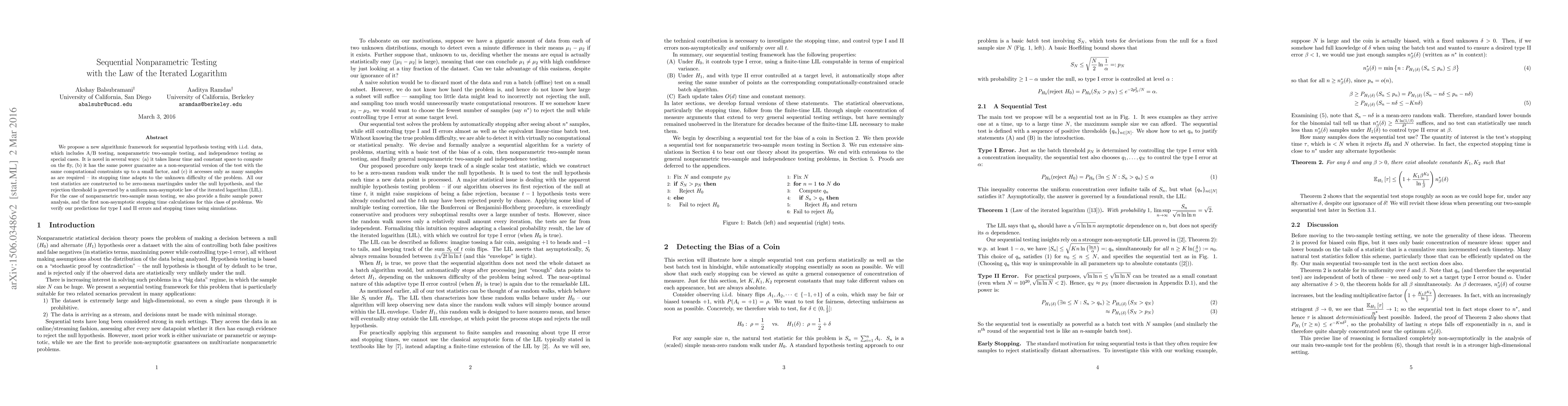 We propose a new algorithmic framework for sequential hypothesis testing with i.i.d. data, which includes A/B testing, nonparametric two-sample testing, and independence testing as special cases. It is novel in several ways: (a) it takes linear time and constant space to compute on the fly, (b) it has the same power guarantee as a non-sequential version of the test with the same computational constraints up to a small factor, and (c) it accesses only as many samples as are required - its stopping time adapts to the unknown difficulty of the problem. All our test statistics are constructed to be zero-mean martingales under the null hypothesis, and the rejection threshold is governed by a uniform non-asymptotic law of the iterated logarithm (LIL). For the case of nonparametric two-sample mean testing, we also provide a finite sample power analysis, and the first non-asymptotic stopping time calculations for this class of problems. We verify our predictions for type I and II errors and stopping times using simulations.